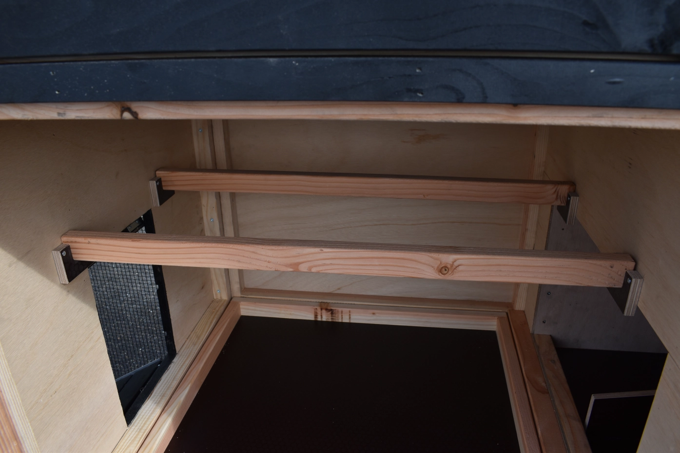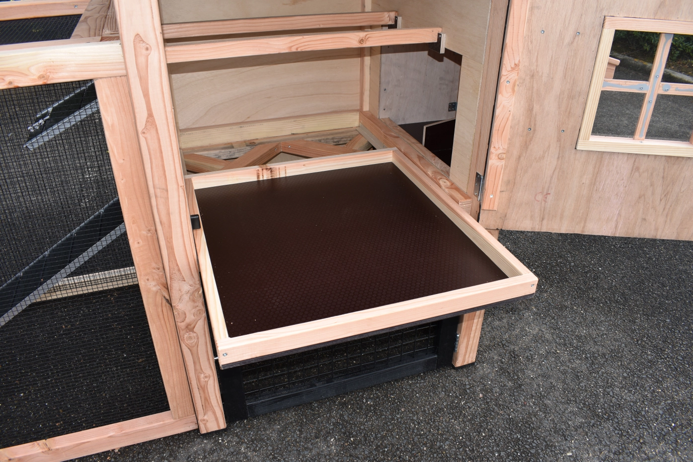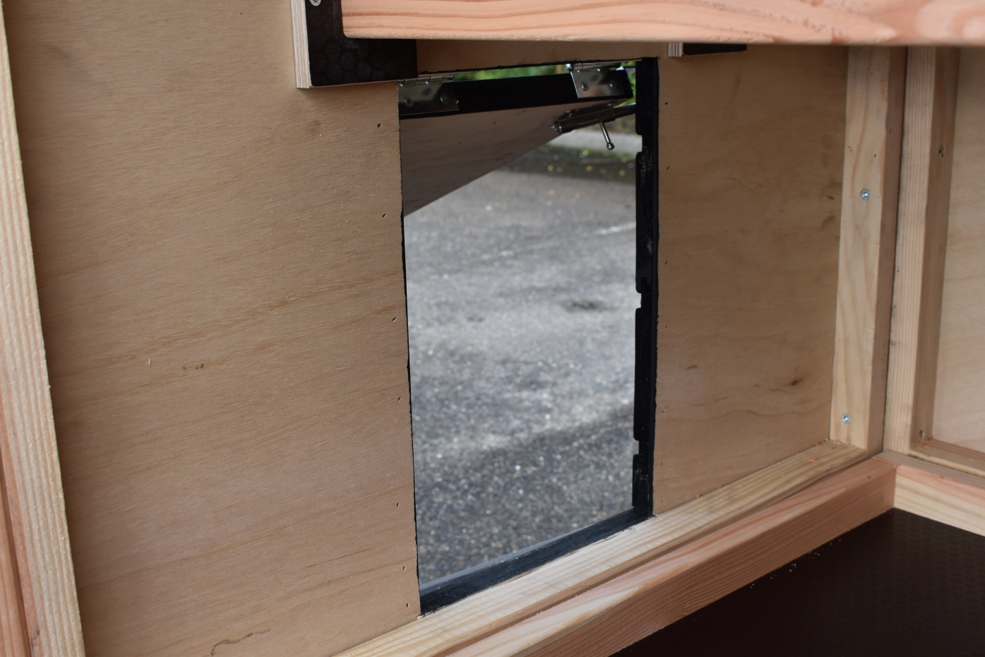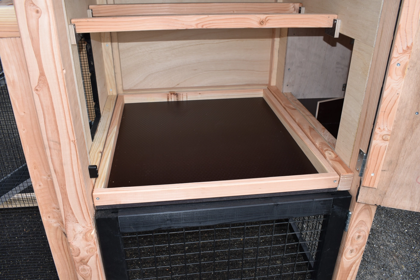 - De binnenkant van het nachthok is betimmerd met hardhout multiplex