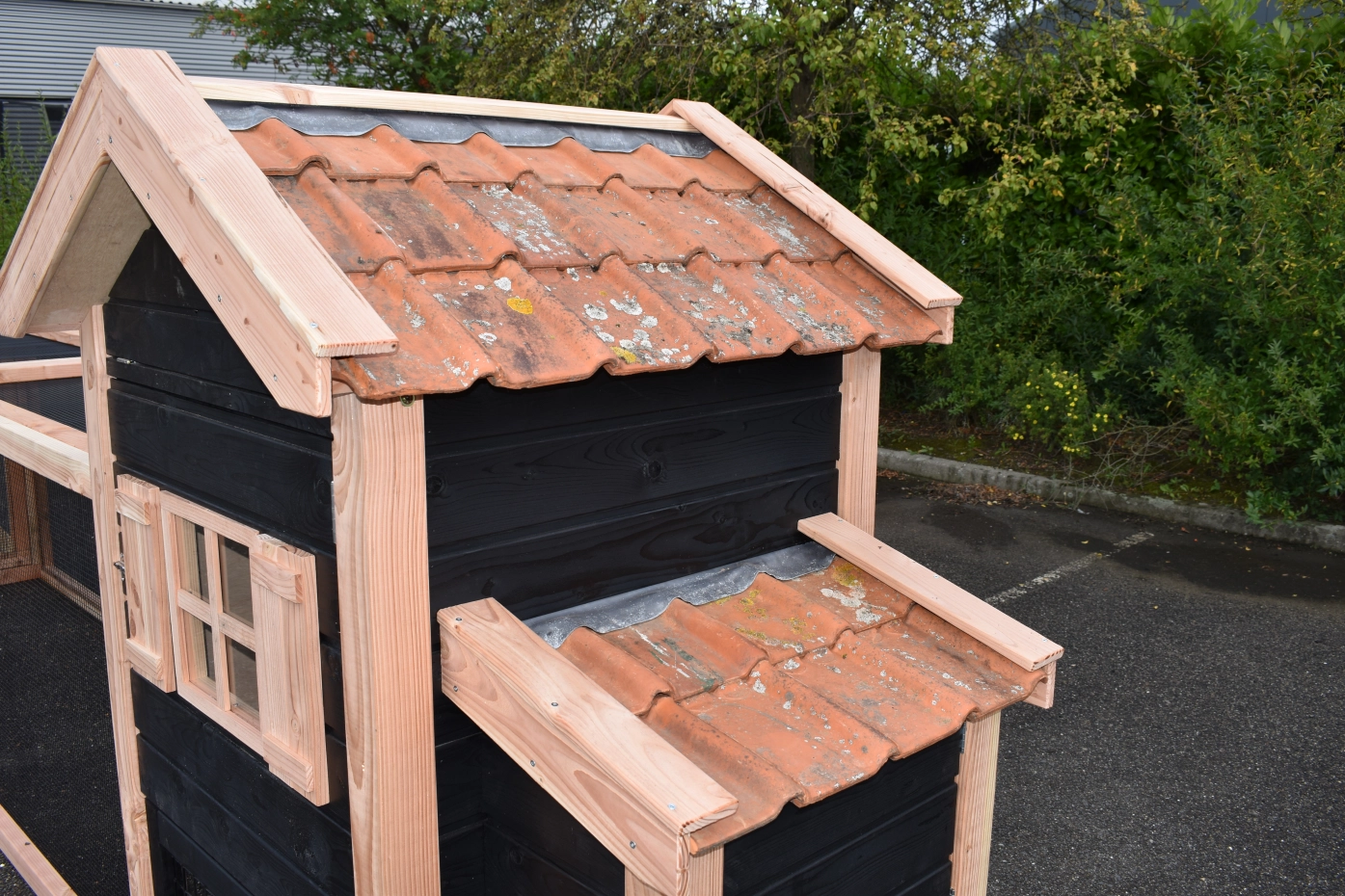 - Met keramische dakpannen: om het hok extra charme te geven worden 2e hands restauratie dakpannen gebruikt