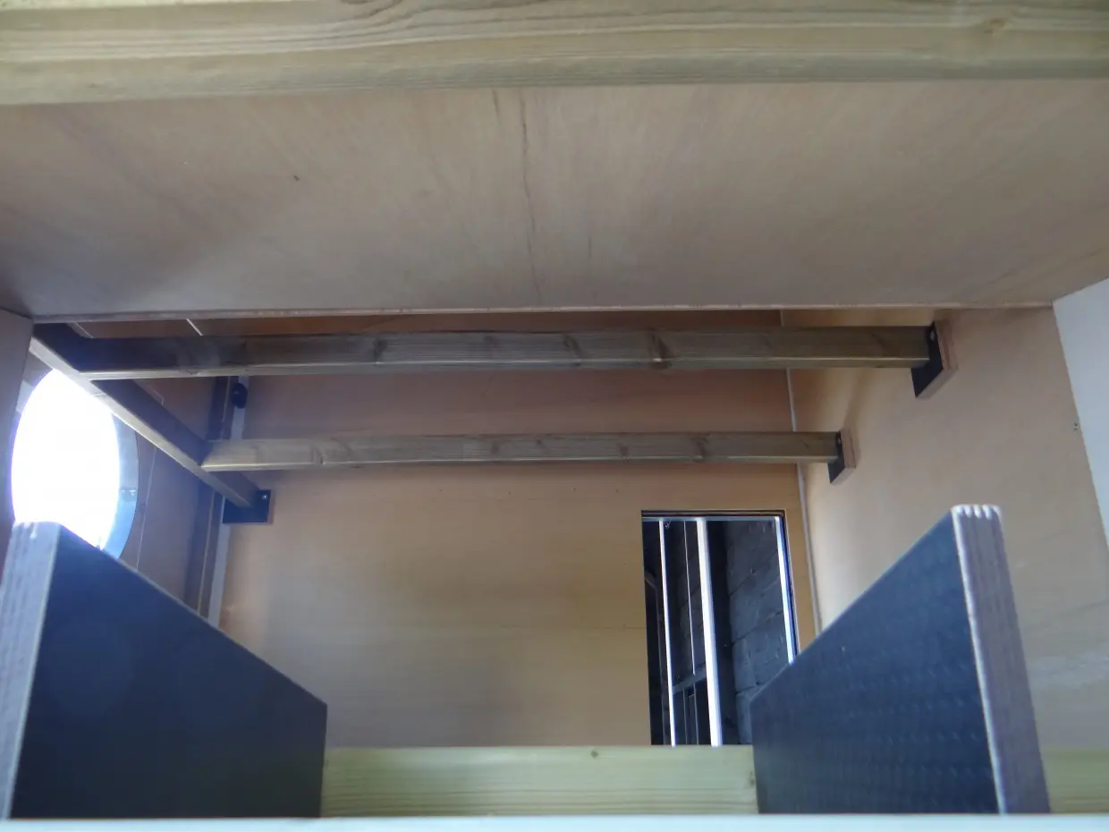 - De binnenkant van het nachthok is betimmerd met hardhout multiplex