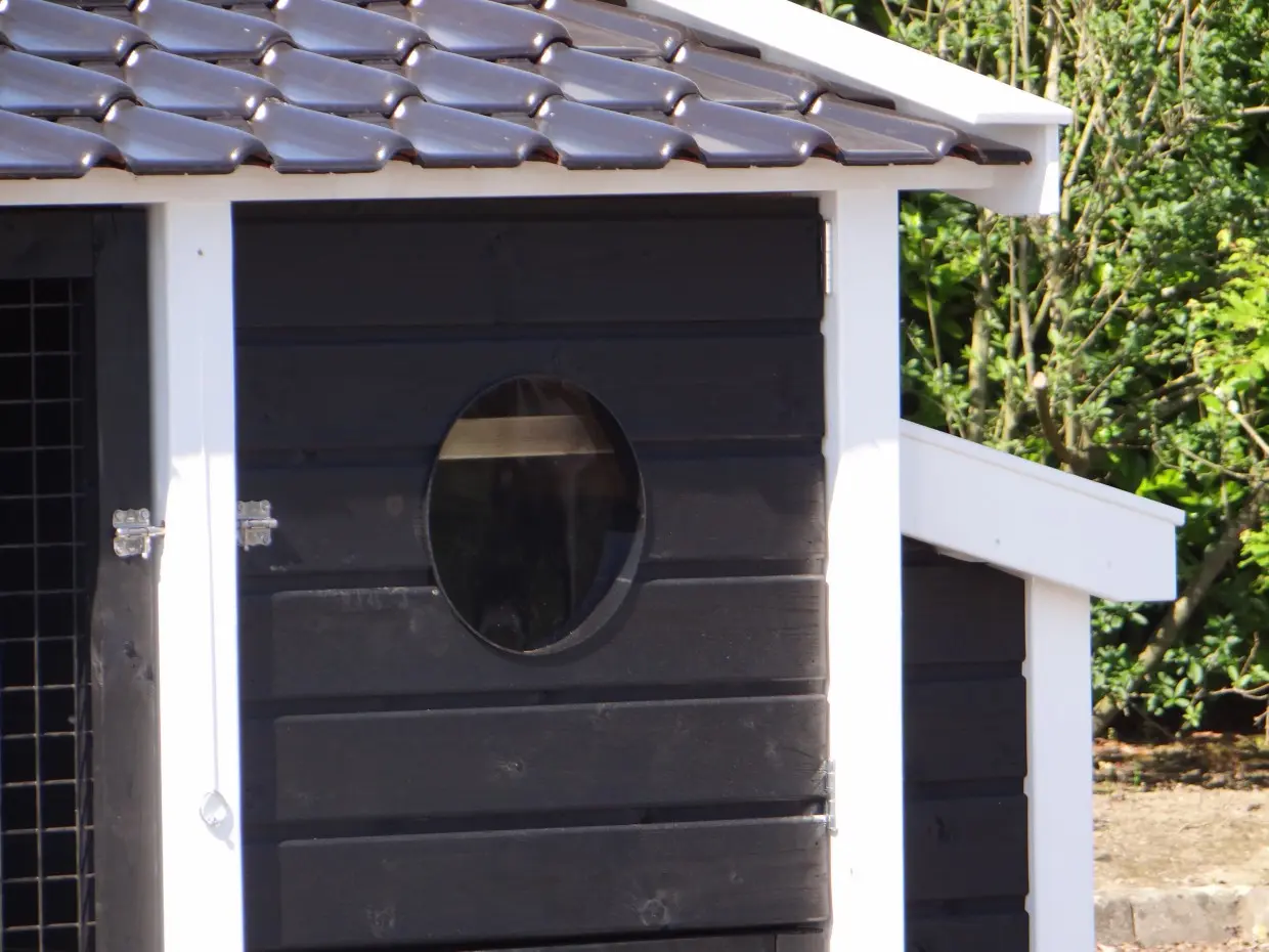 - Dit kippenhok is voorzien van een legnest