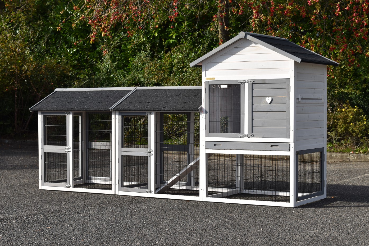Kippenhok Prestige Medium is uitgebreid met 2 rennen, een mooi kippenhok voor uw kippen. Dit kippenhok is tot elk detail goed afgewerkt met ruime deuren, handige schuiflade en royaal nachthok met 2 zitstokken. Voor optimale bescherming staat het kippenhok op rubberen poten. Dit alles maakt kippenhok Prestige Medium zeer praktisch in gebruik. Kippenhok Prestige Medium is handig uitbreidbaar met o.a. aanbouwrennen. U kunt dit kippenhok ook met kleine aanpassing eenvoudig andersom opbouwen.
