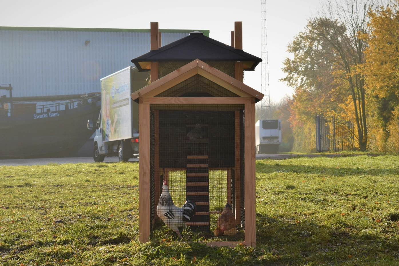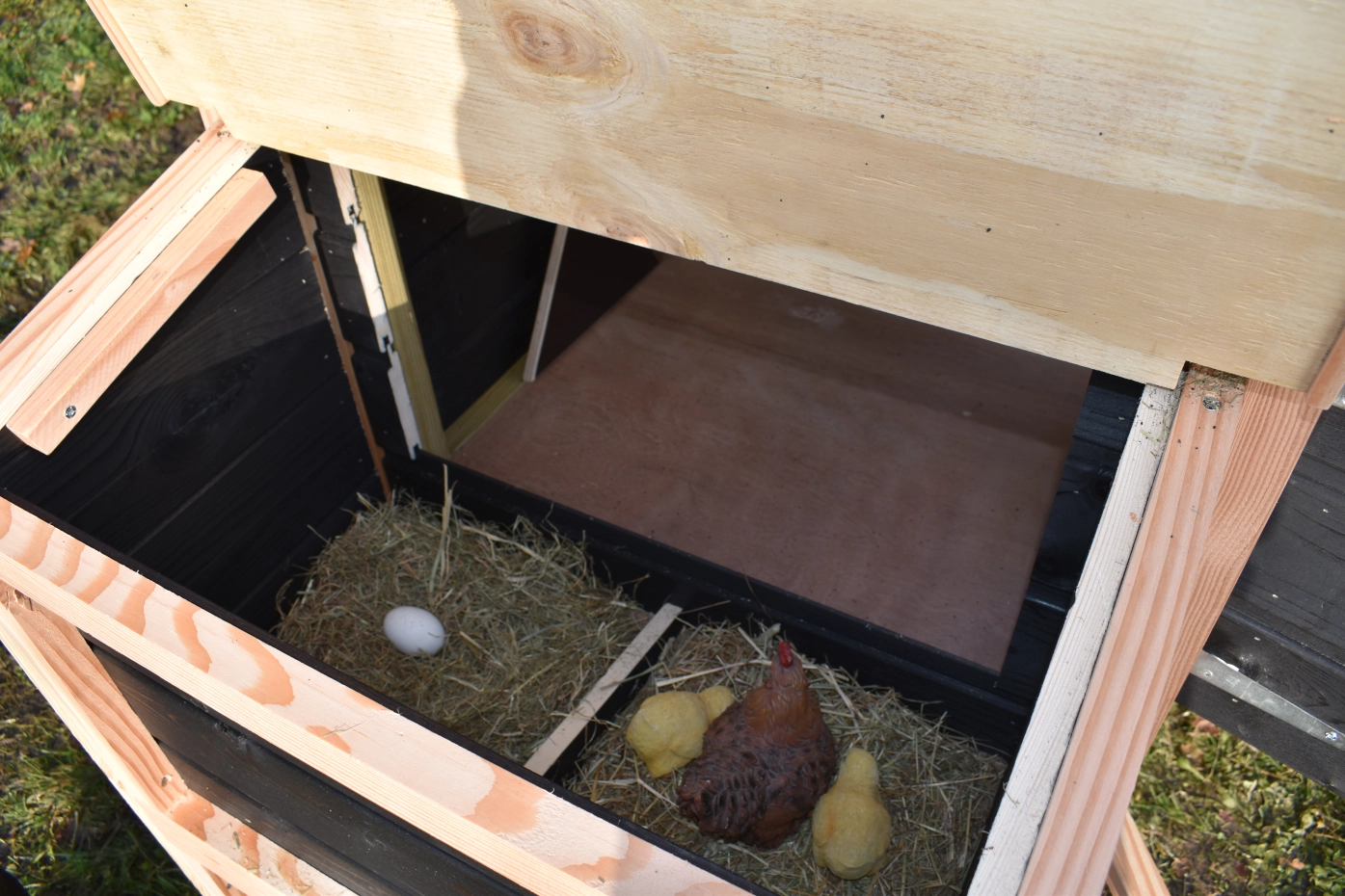 - Dit kippenhok is voorzien van een legnest