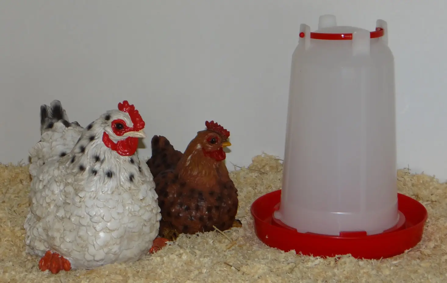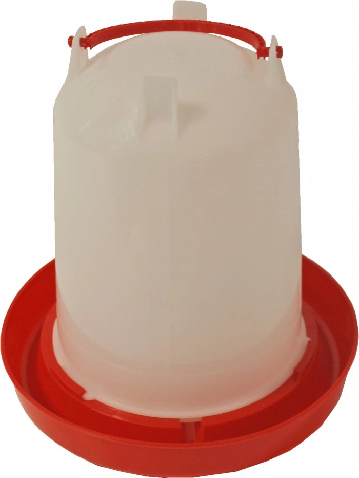 Kunststof kippen drinksilo. Vul de fontein met drinkwater en draai daarna de bodem op de toren. De drinkfontein heeft een gat waaruit het water komt en zich verspreidt over de gehele bodem. Met het hengsel aan de bovenzijde hangt u de drinkfontein eenvoudig op. Hierdoor komt er weinig vuil in het drinkwater terecht. De kippen kunnen er niet met de pootjes in gaan staan. Deze rood witte plastic drinktoren is te gebruiken in een volière, kippenren, of gewoon op een open plaats.