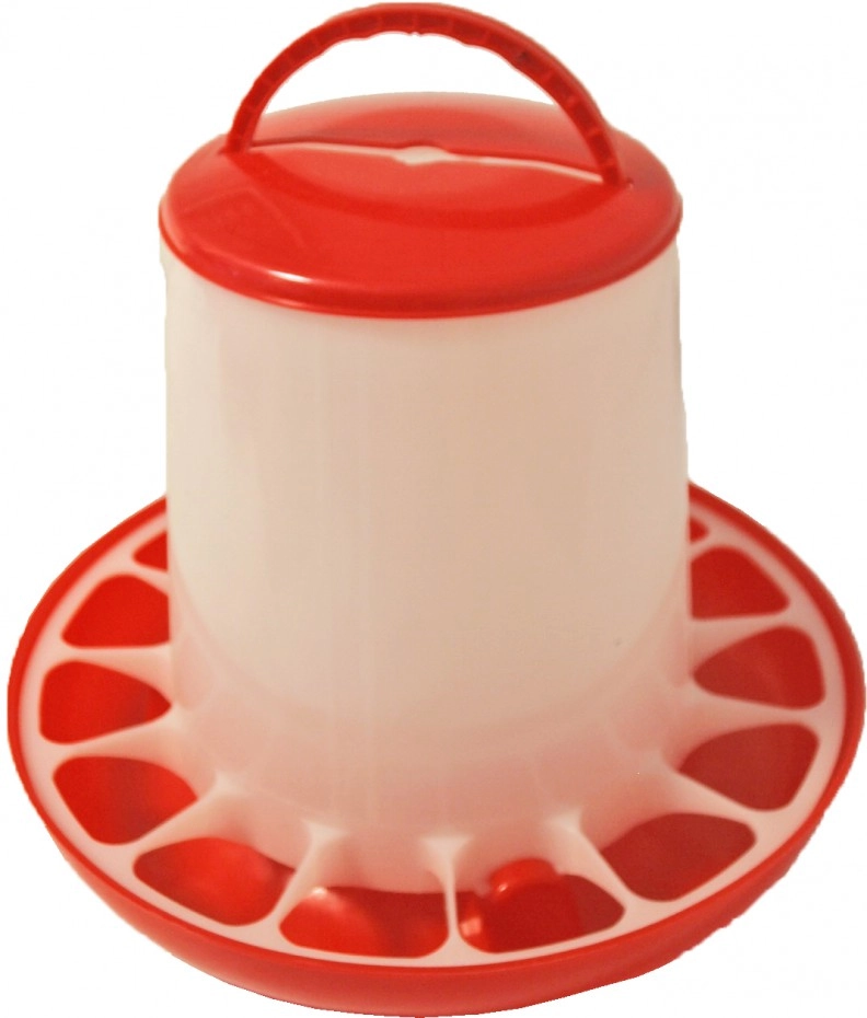 Kunststof kippenvoer silo. Plastic voerfontein bajonet/hangbaar is gemaakt van extra zacht materiaal waardoor het product bijna onbreekbaar is. Ook in de winter blijft dit materiaal sterk. Te gebruiken door de silo op te hangen of op de bodem van het hok te plaatsen. Wanneer u deze voerbak ophangt adviseren we om de voerbak op rughoogte van het dier te hangen (onderzijde bodem). Voor jonge kuikens altijd de voerbak op de grond plaatsen. De speciale constructie van de gril beperkt het morsen tot een minimum. Het product is compleet met deksel. Eenvoudig te monteren door cilinder vast te draaien in de bodem d.m.v. een bajonetsluiting.