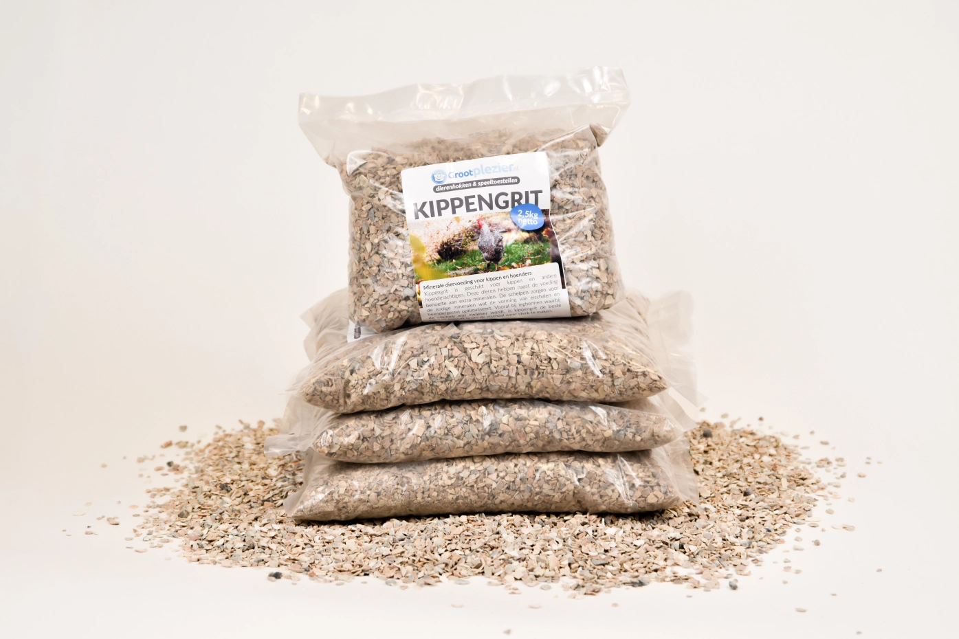 Kippengrit is geschikt voor kippen en andere hoenderachtigen. Deze dieren hebben naast de voeding behoefte aan andere mineralen. De schelpen zorgen voor de nodige mineralen wat de vorming van eischalen en beendergestel optimaliseert.
