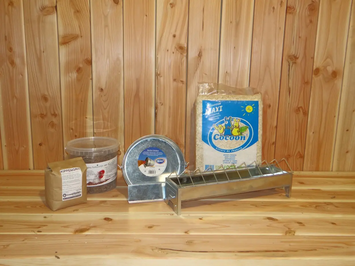 Met de aanschaf van dit voordeel-startpakket Basis voor uw kippen hoeft u de deur niet meer uit, en u slaagt nog eens extra voordelig ook.