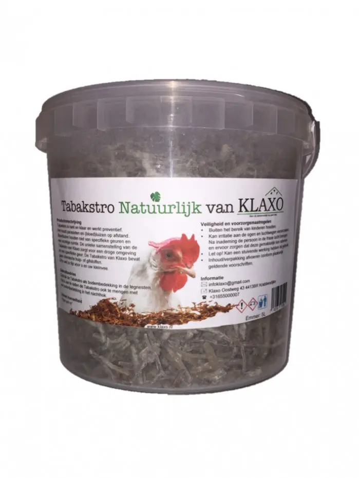 ✓ 1 emmer Klaxo tabakstro (bloedluiswerend middel voor in nachthok en legnest)