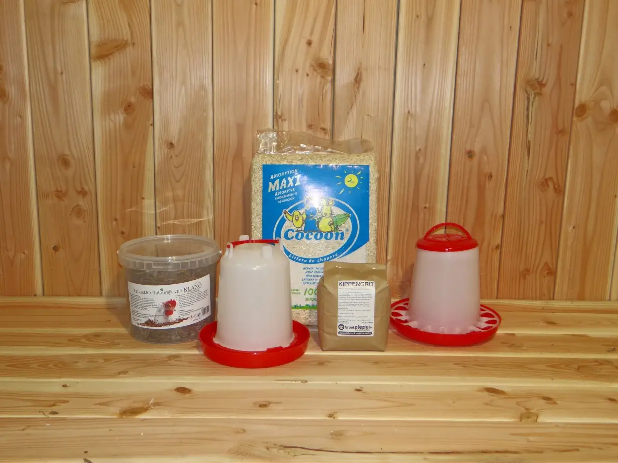 Met de aanschaf van dit voordeel-startpakket budget voor uw kippen hoeft u de deur niet meer uit, en u slaagt nog eens extra voordelig ook.