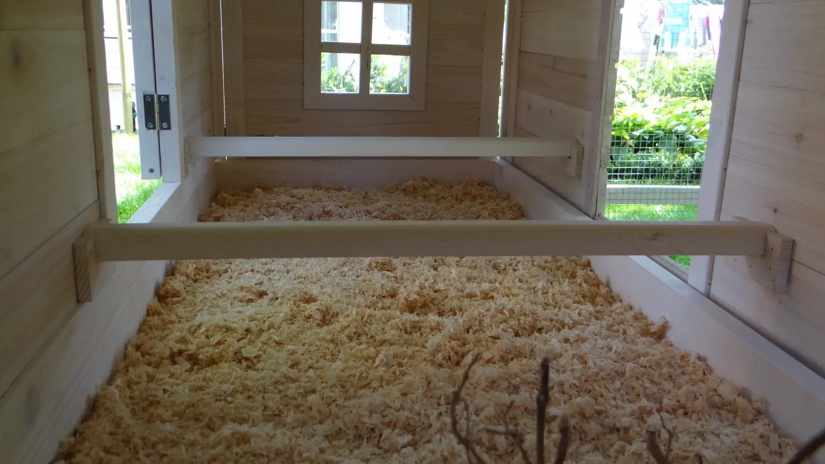 • Metalen schuiflade (zink) om het hok handig schoon te maken