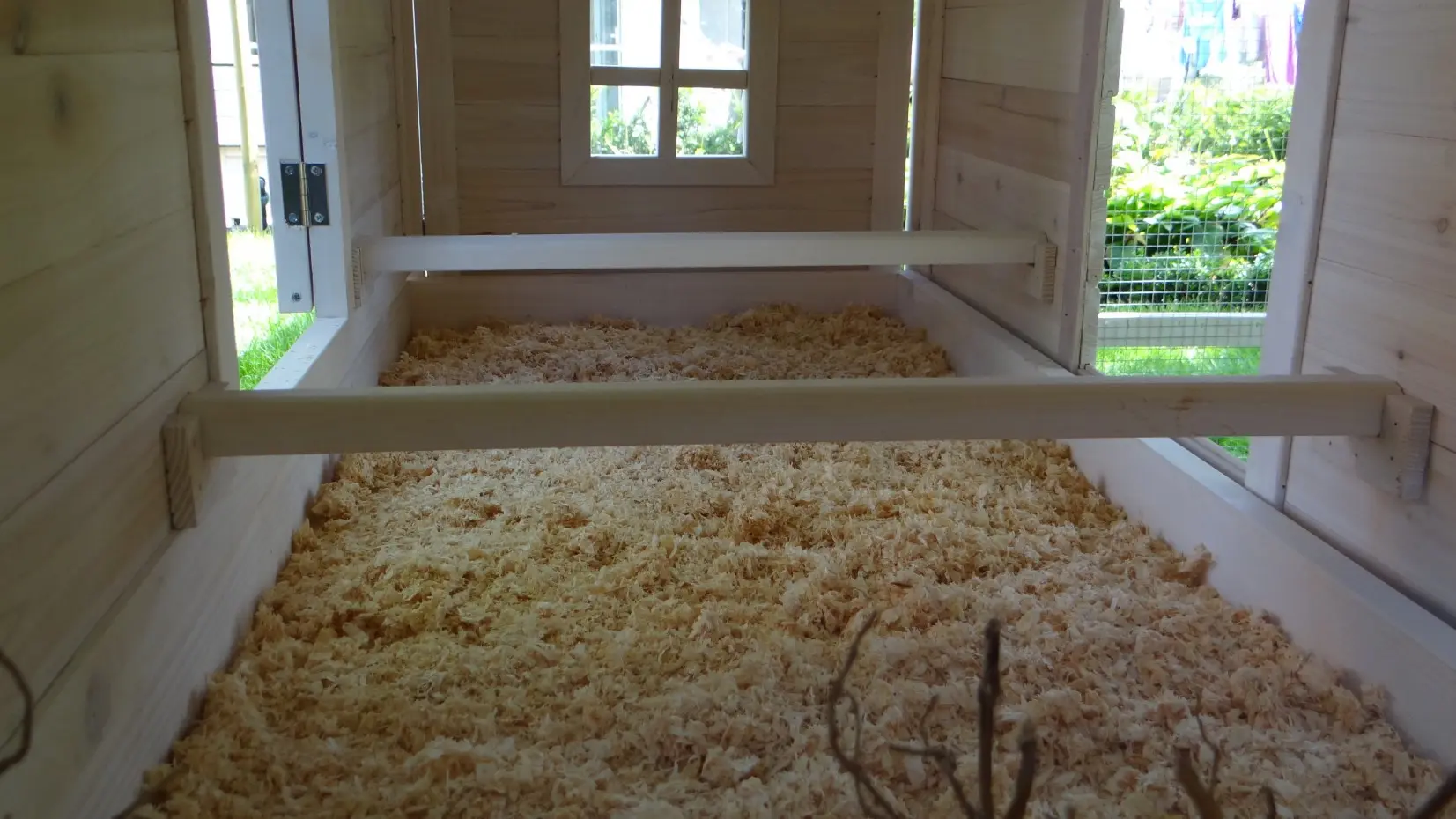 • Metalen schuiflade (zink) om het hok handig schoon te maken