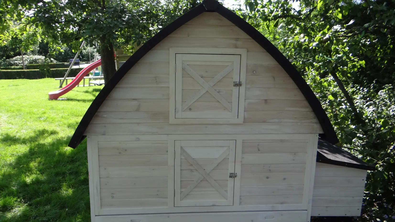 • Dit dierenhok is gemaakt van mooi dennenhout