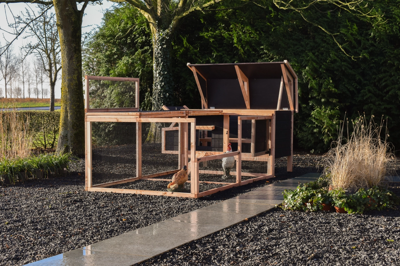 Dit lage model is gemakkelijk schoon te maken dankzij het opklapbare dak en het handige deurtje aan de voorkant. De combinatie douglas zwart geeft het hok een chique uitstraling.