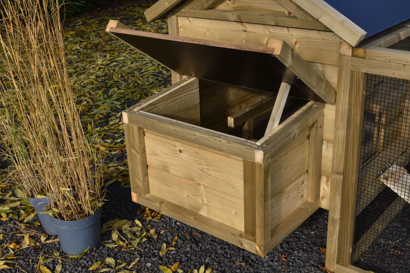 • Dit kippenhok is voorzien van een legnest