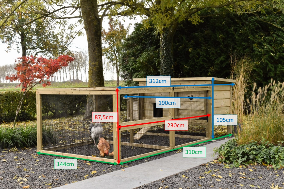 Het hok wordt standaard geleverd met 1 ren. U heeft de mogelijkheid om het hok uit te breiden met meerdere rennen.