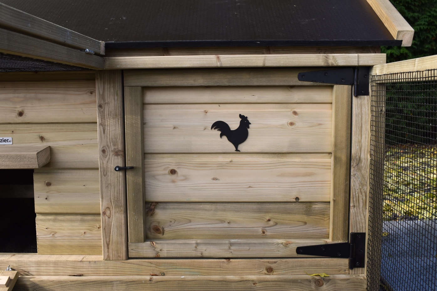 - Afsluitbaar nachthok: voorzien van aluminium schuifluik aan de binnenzijde