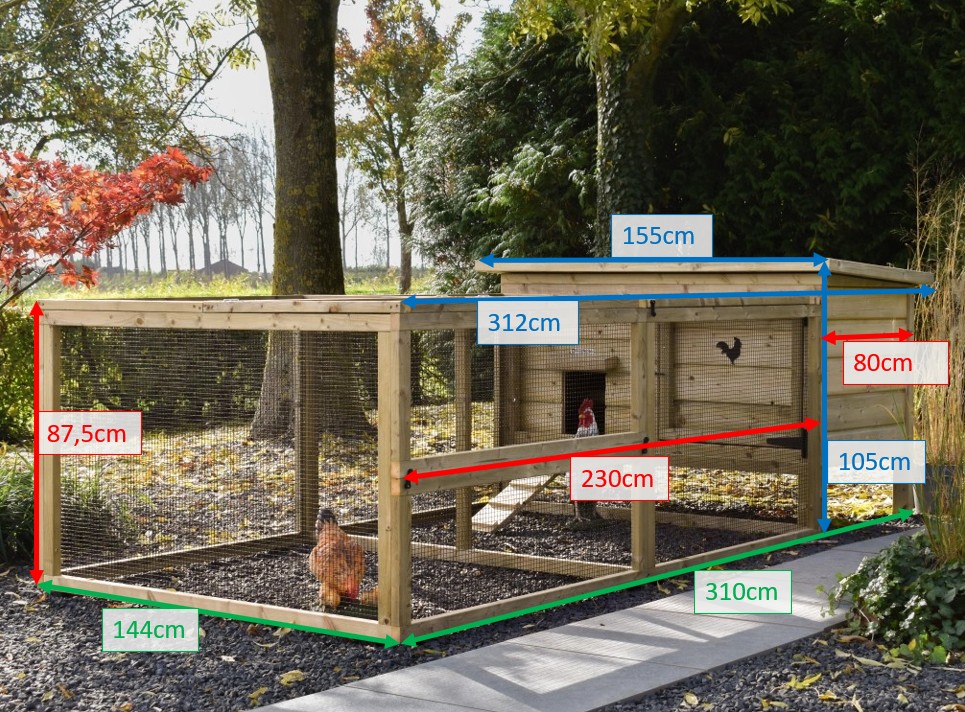 | Buitenwerkse afmetingen incl. dak (BxDxH) | 155x312x105cm |