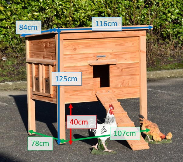 | Buitenwerkse afmetingen incl. dak en nestkast (BxDxH) | 116x84x125cm |