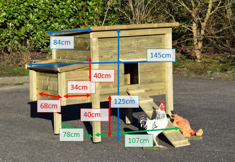 | Buitenwerkse afmetingen incl. dak en nestkast (BxDxH) | 144x84x125cm |