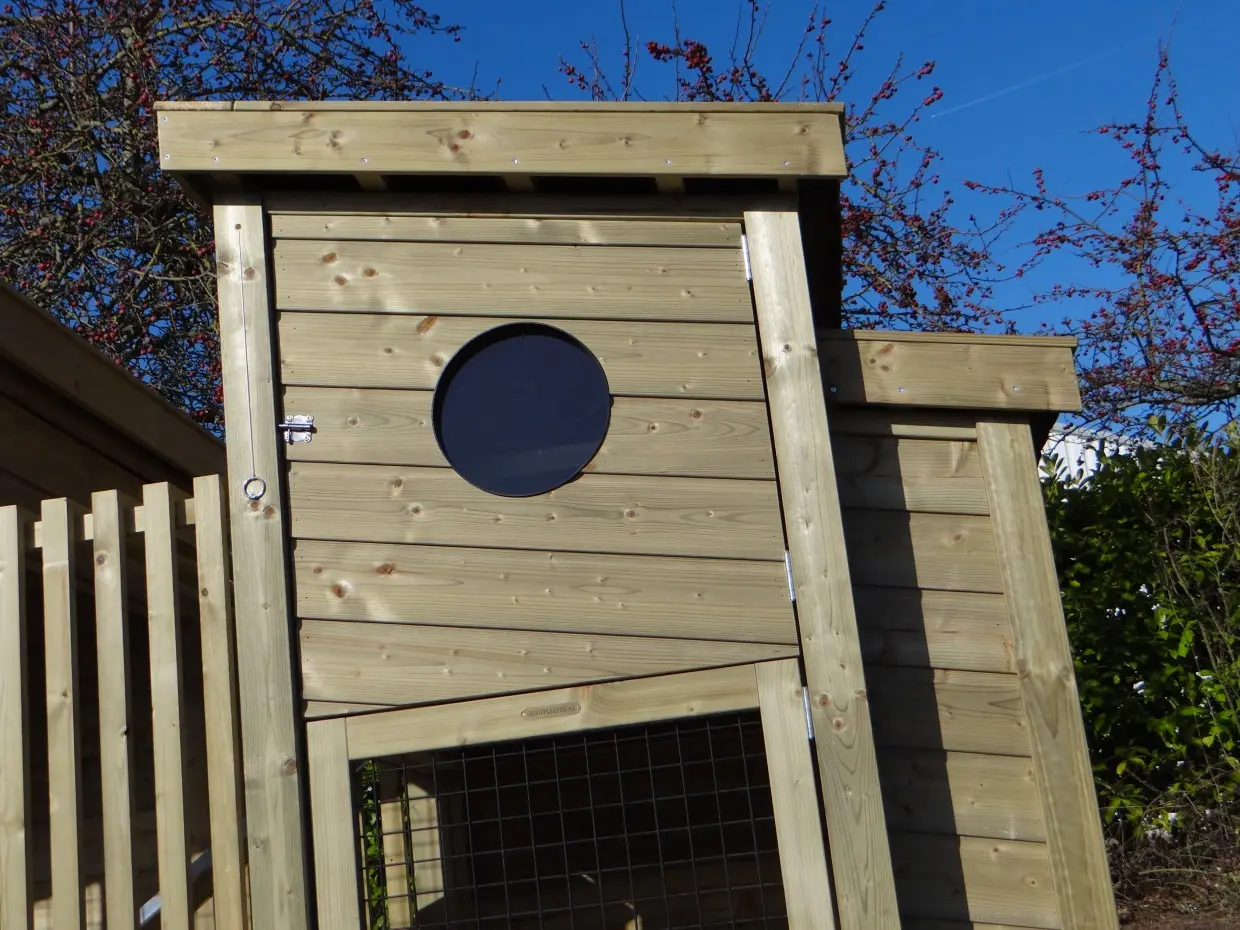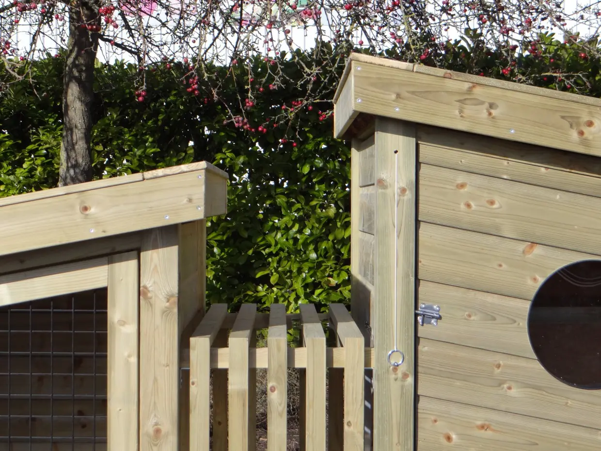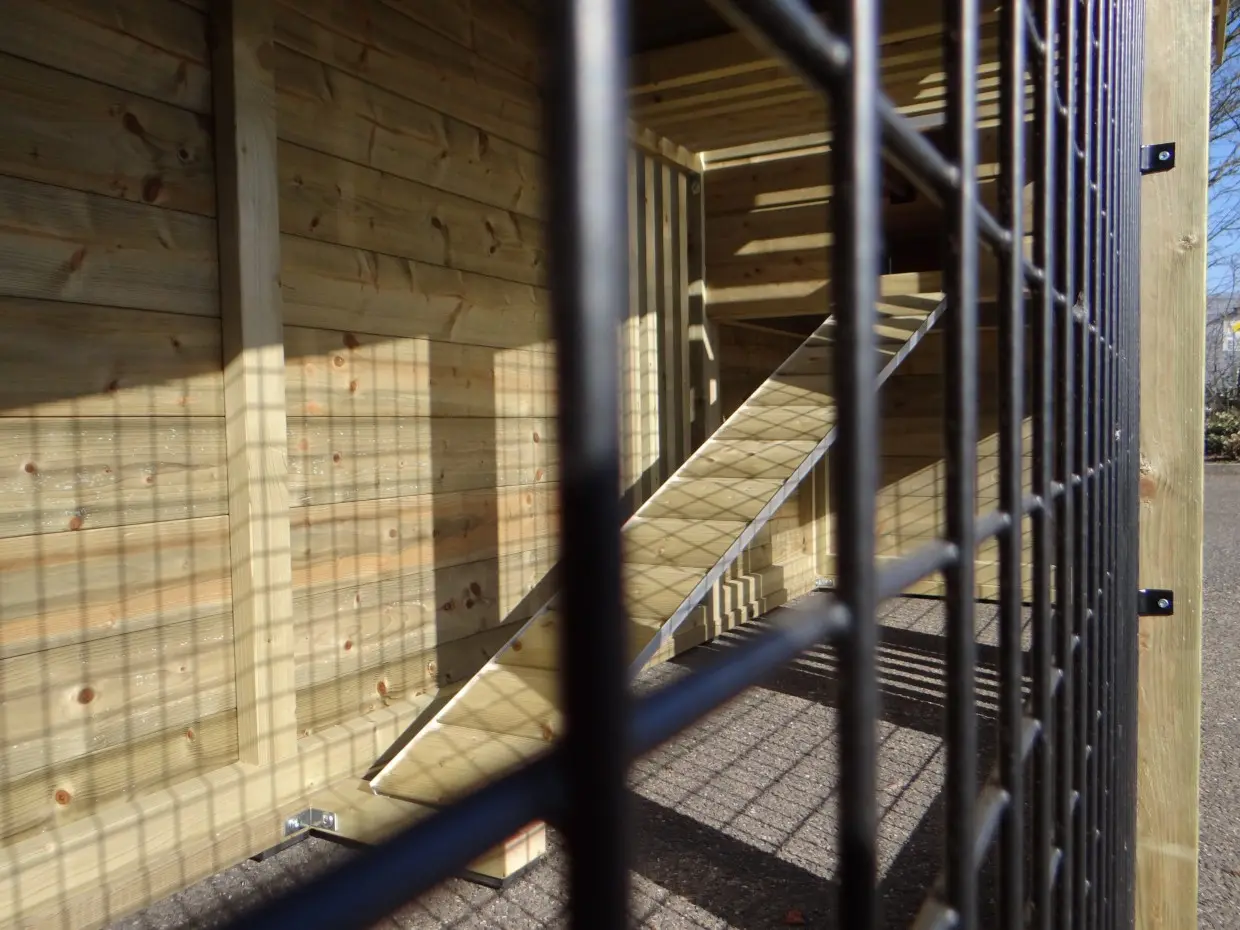 - De binnenkant van het nachthok is betimmerd met hardhout multiplex