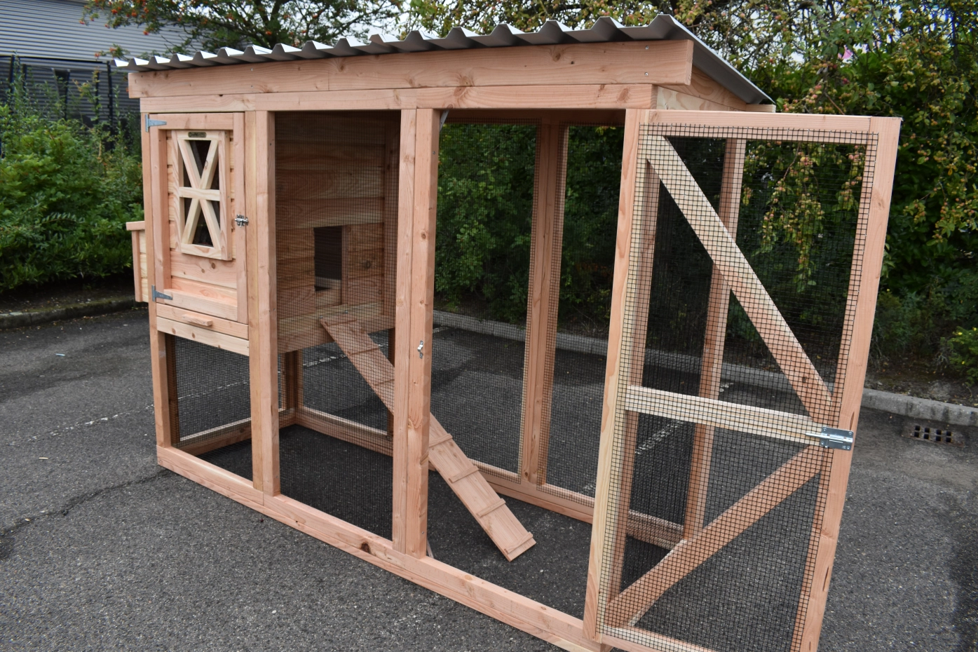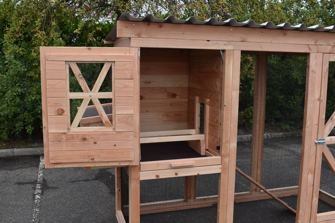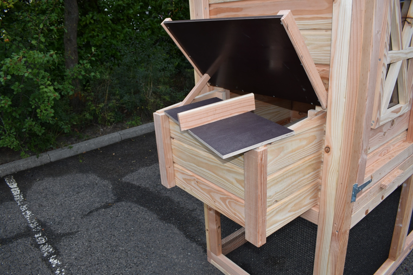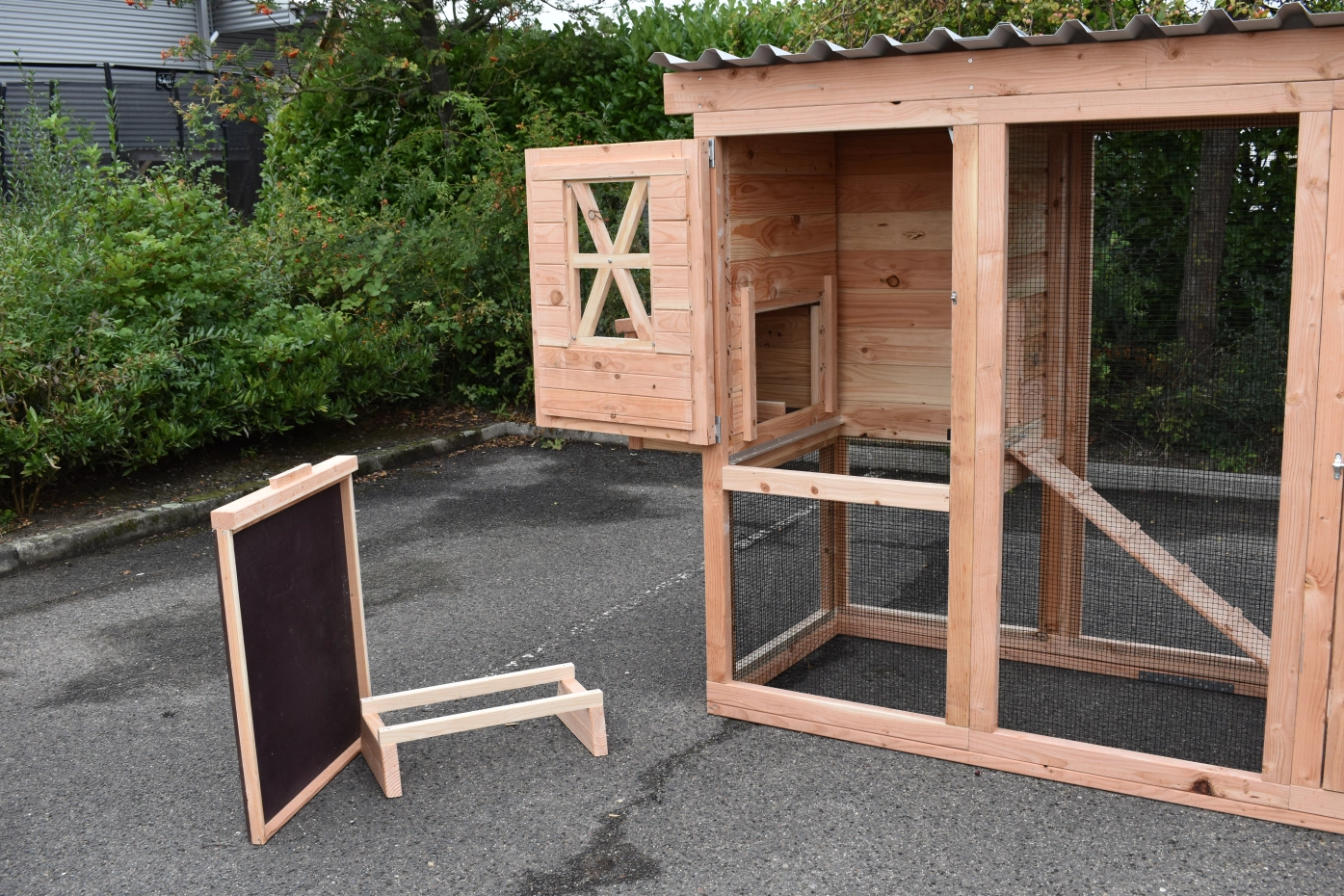 - Dit kippenhok is voorzien van een legnest