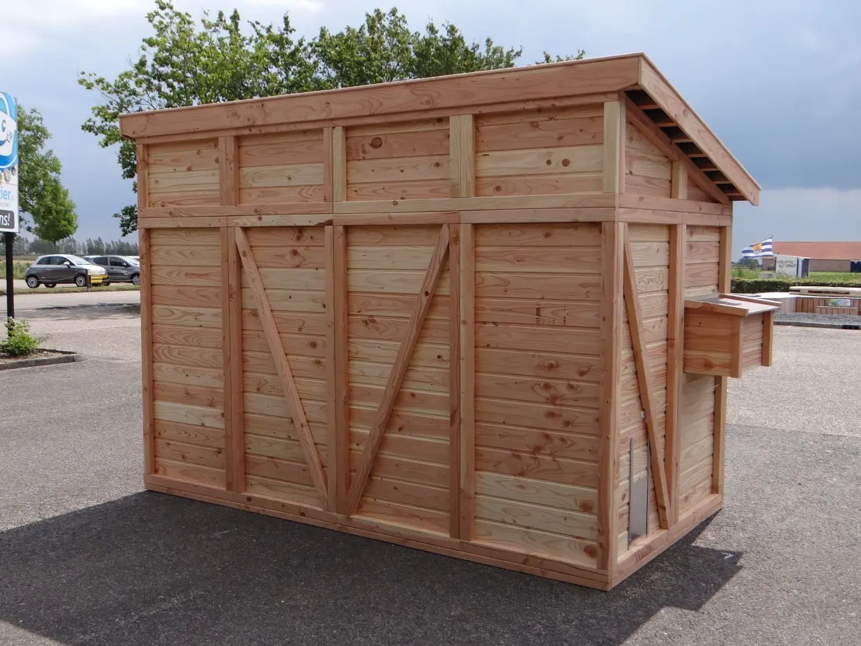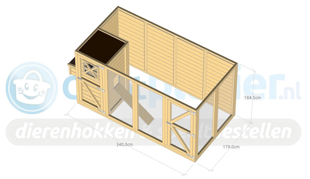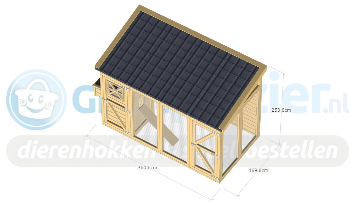 | Buitenwerkse afmetingen incl. dak en nestkast (BxDxH) | 390x190x253cm |