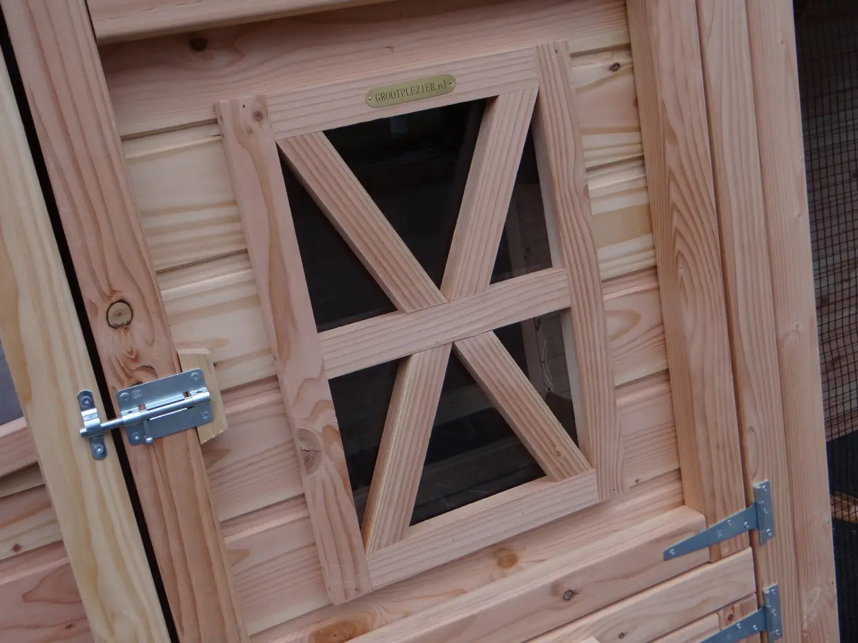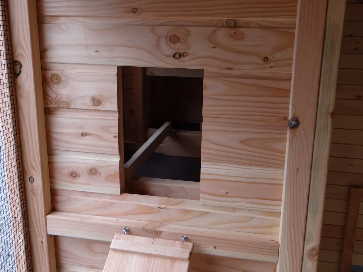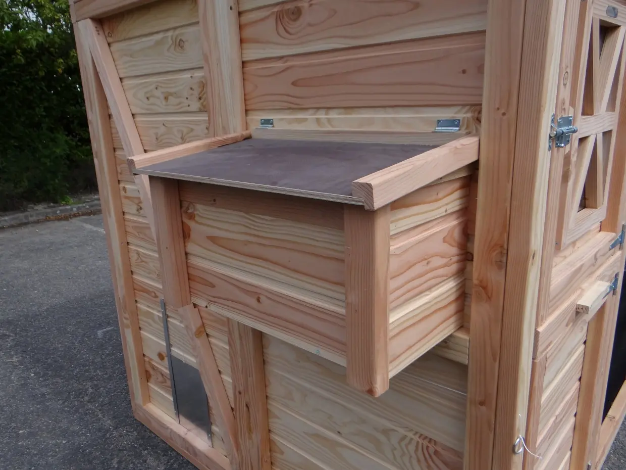 - Dit kippenhok is voorzien van een legnest