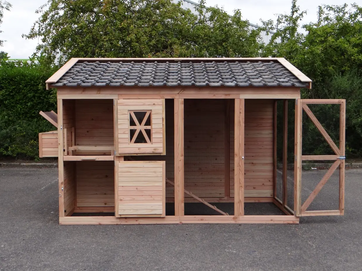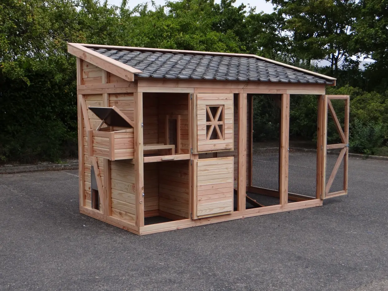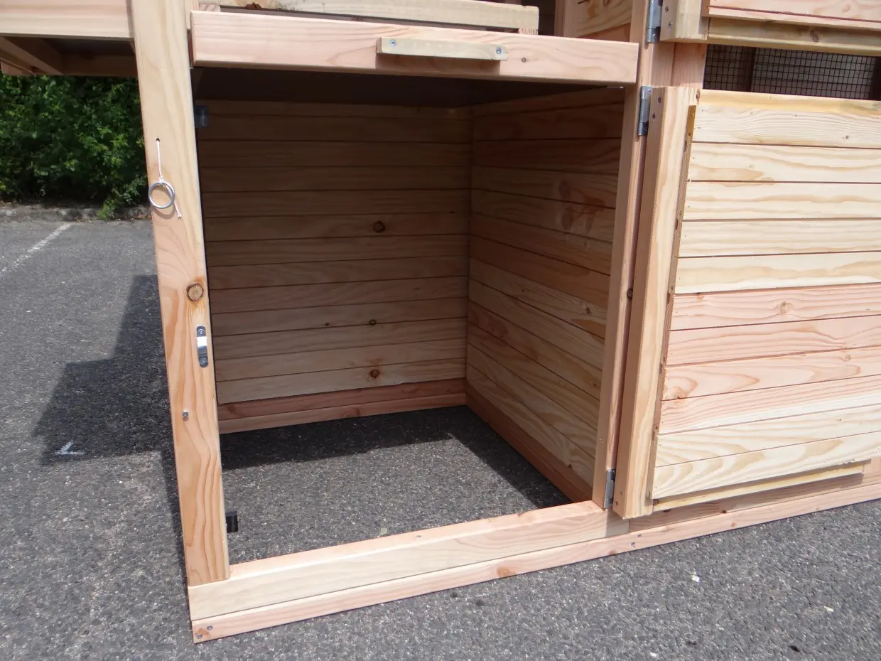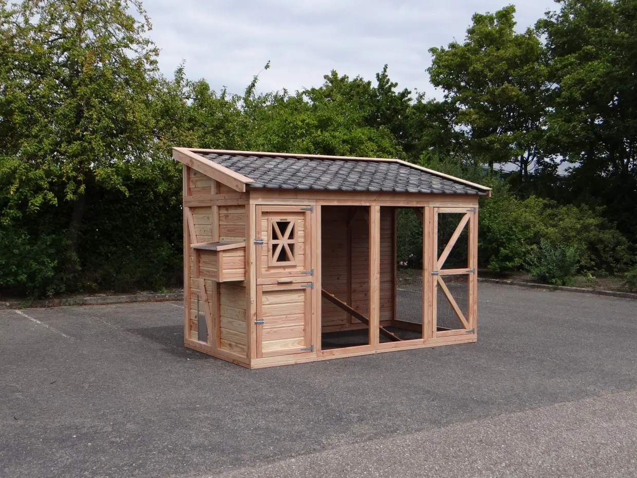 - Dit kippenhok is voorzien van een legnest