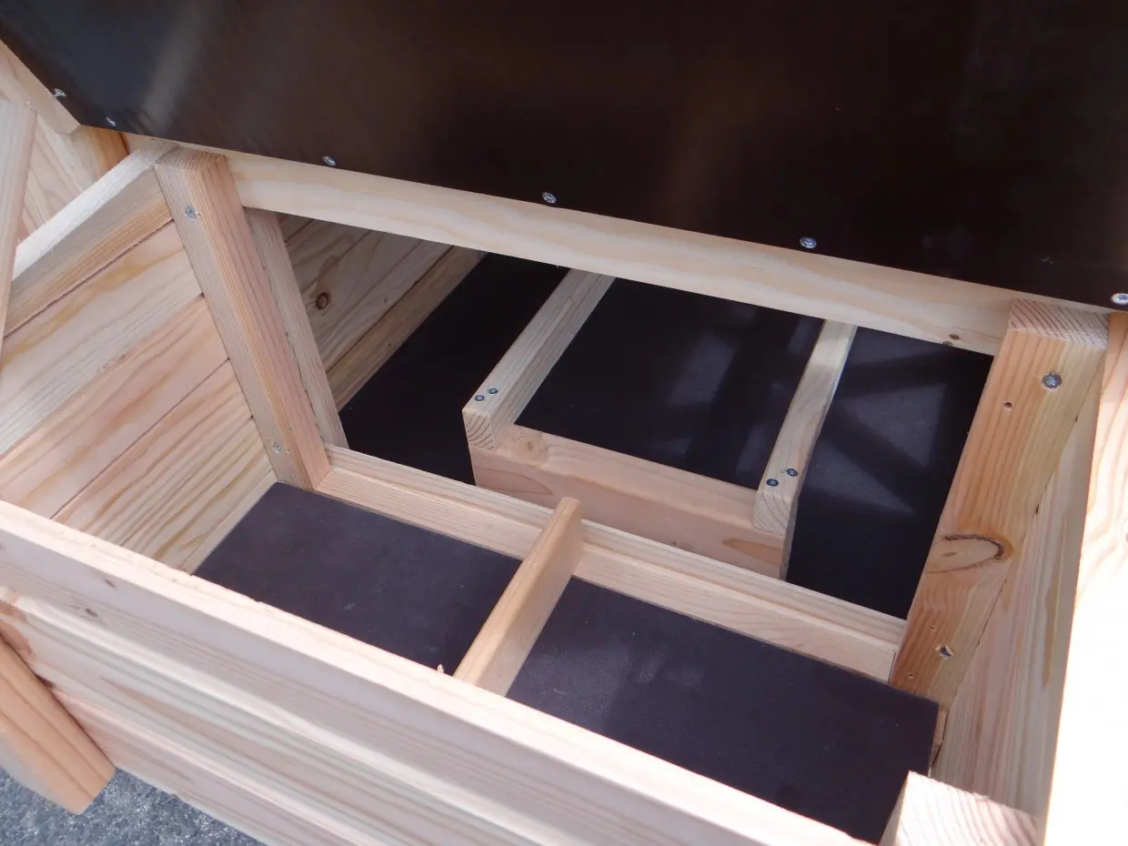 - Als de luchtvochtigheid buiten hoog is, wordt het ook vochtig in een hok. Om schimmelvorming te voorkomen kunt u de binnenkant van het hok beitsen.