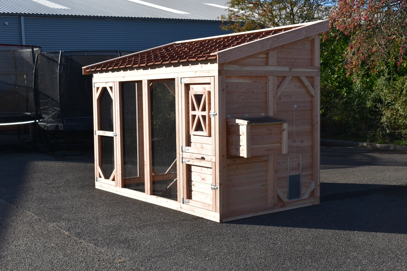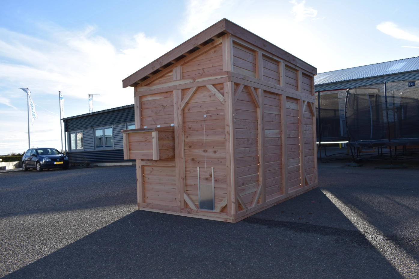 Kippenhok Flex 4.2 is een ruim en overzichtelijke kippenhok. In het nachthok kunnen de kippen op stok en vinden ze een legnest om een ei te kunnen leggen. Ook is het kippenhok goed toegankelijk door de grote deur in de kippenren. In deze ren is ook een luikje voorzien, waarmee u de kippen een vrije uitloop kunt geven. Verder is het handig dat er een schoonmaaklade in het nachthok zit.