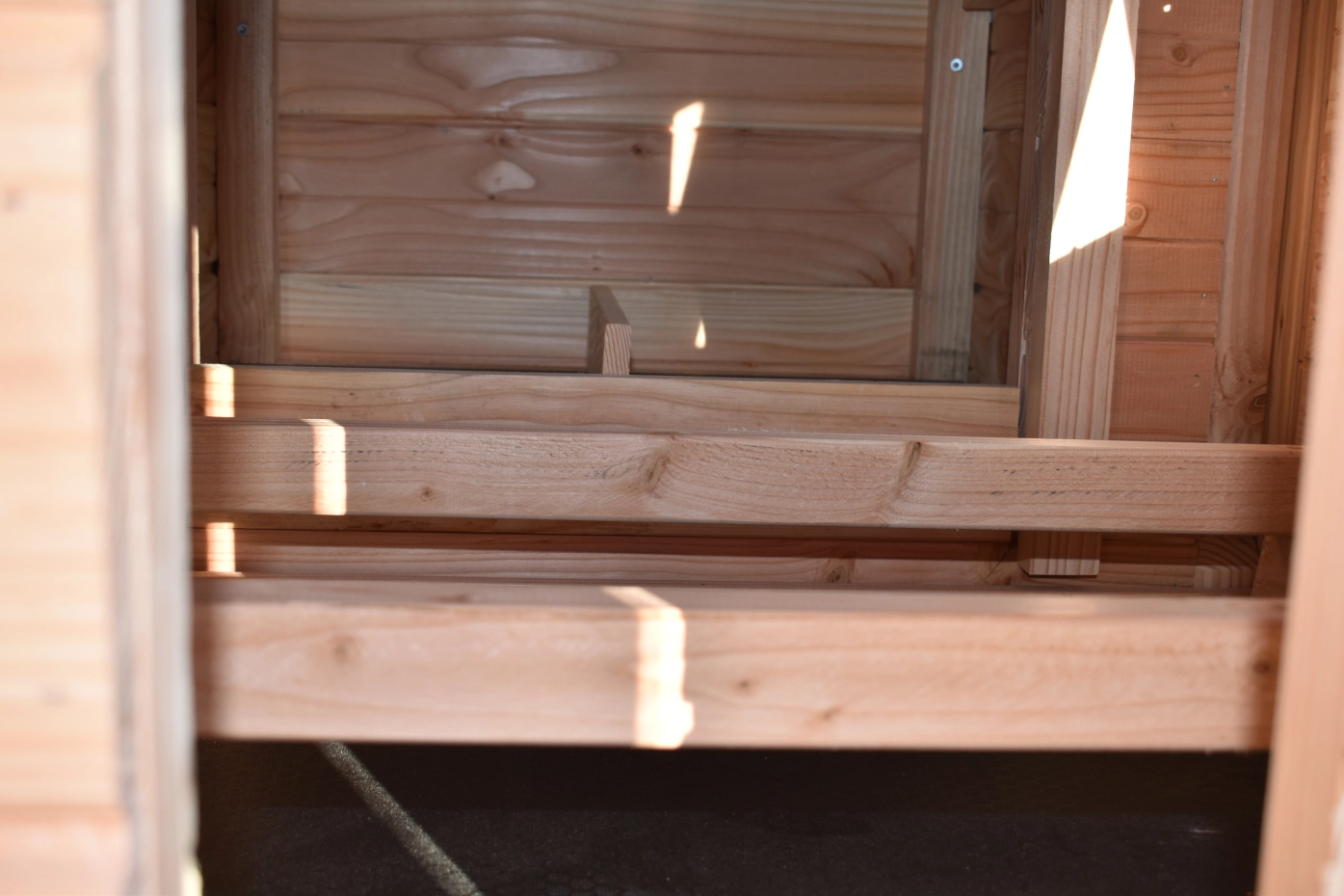 - Als de luchtvochtigheid buiten hoog is, wordt het ook vochtig in een hok. Om schimmelvorming te voorkomen kunt u de binnenkant van het hok beitsen.