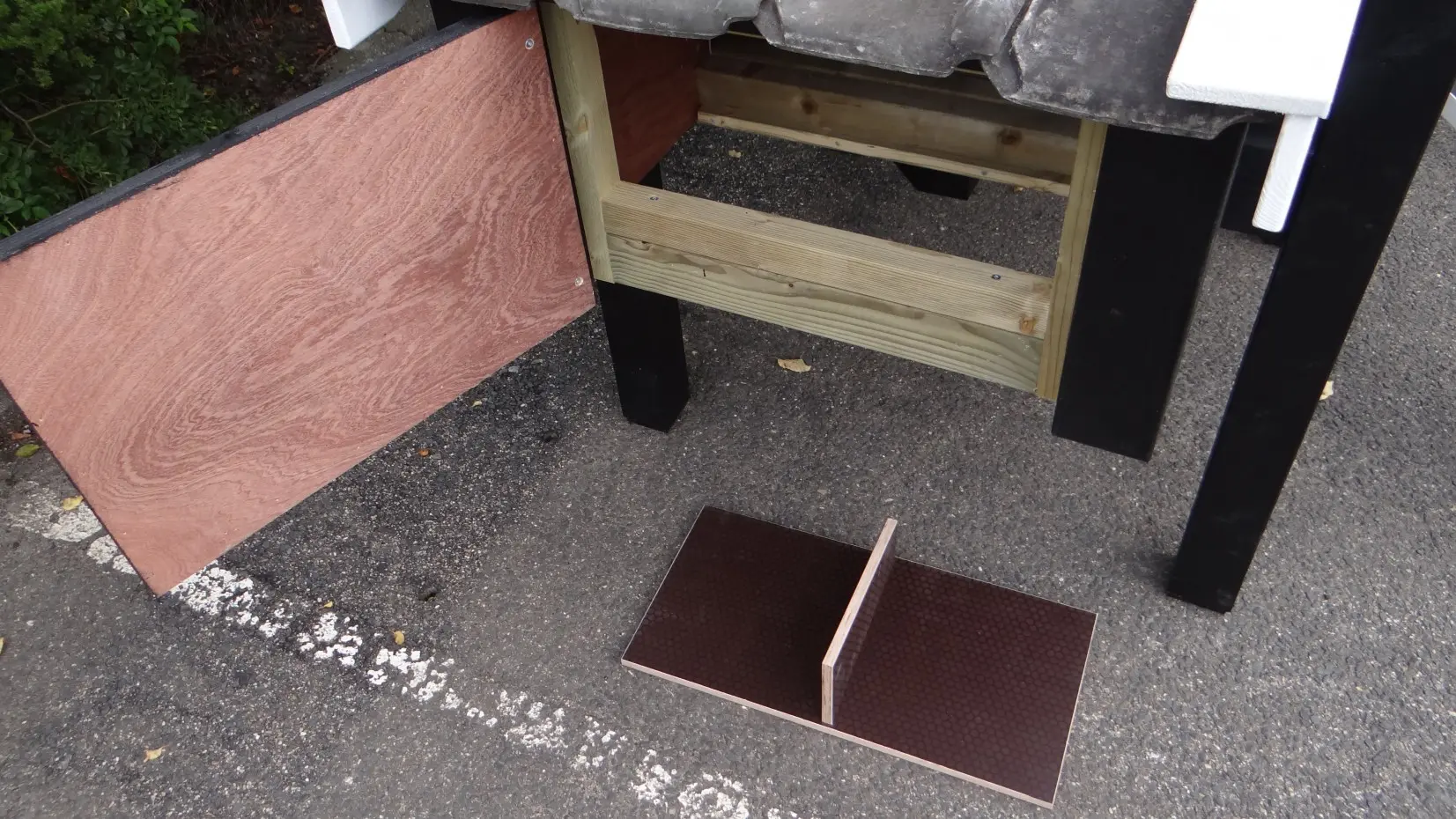 - De binnenkant van het nachthok is betimmerd met hardhout multiplex
