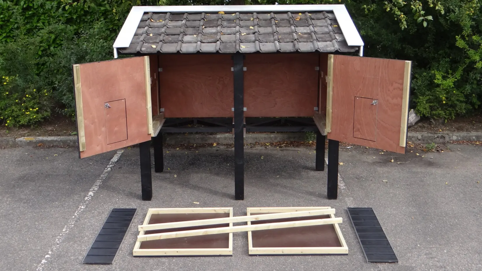 - Dit kippenhok is voorzien van kunststof voetjes