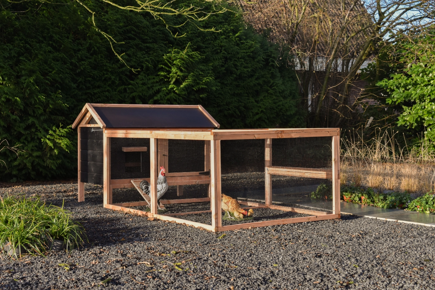 - Afsluitbaar nachthok: voorzien van aluminium schuifluik aan de binnenzijde