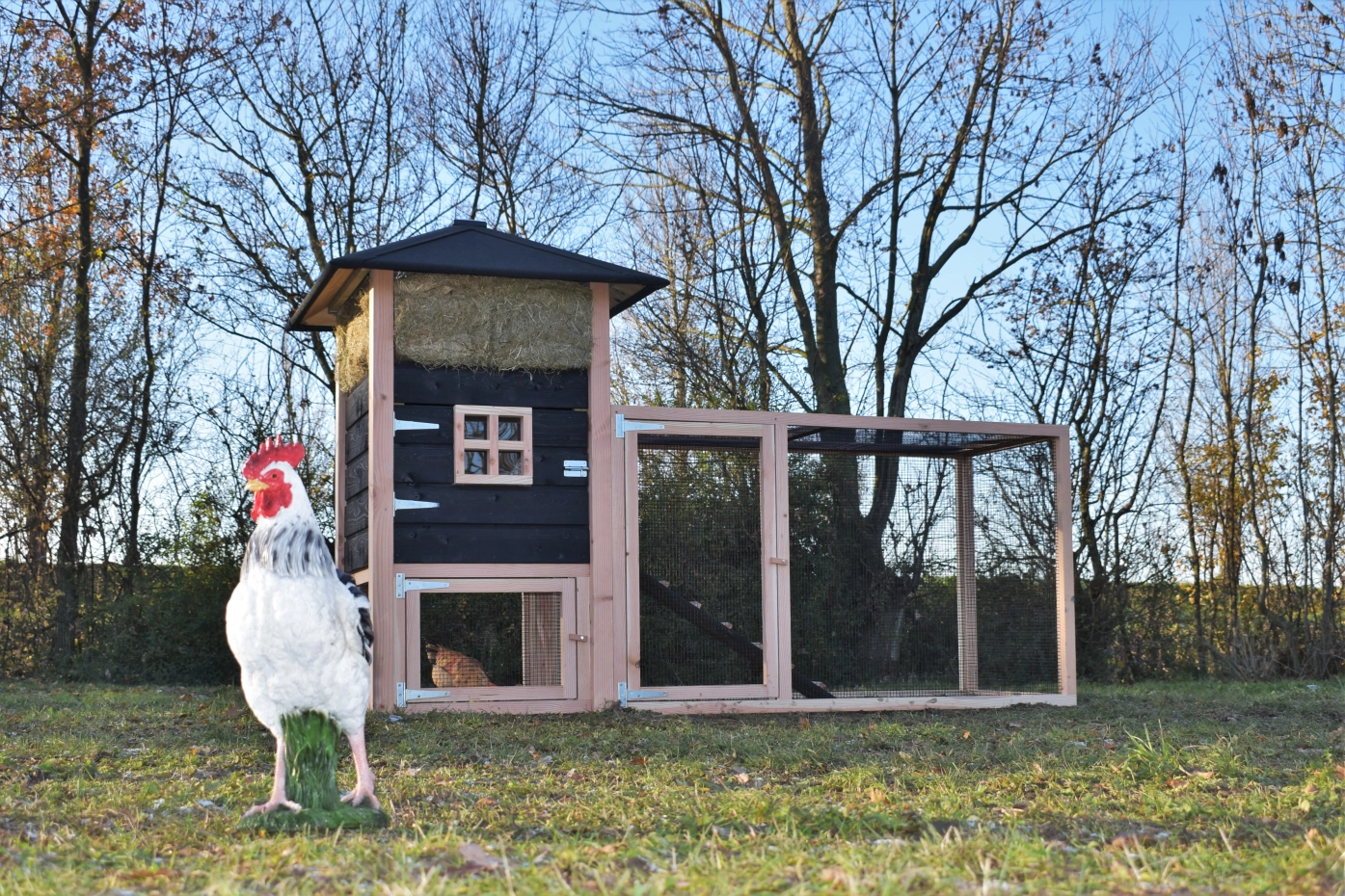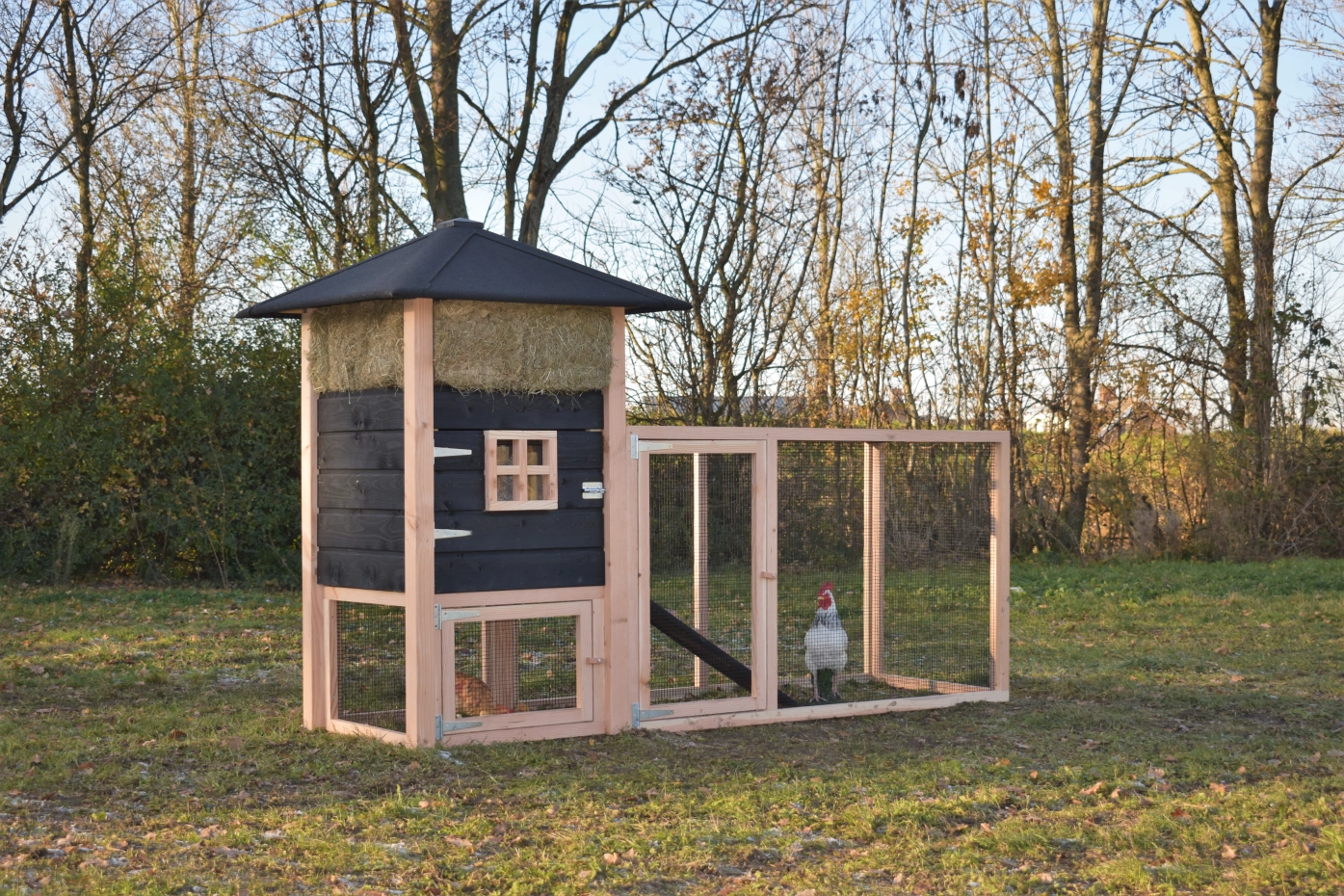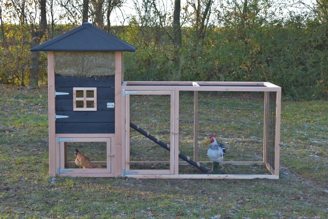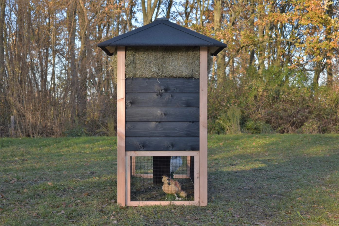 Kippenhok hooiberg Rosanne met aanbouwren. Wilt u voor een aannemelijke prijs een degelijk en duurzaam hok, dan is dit de juiste keuze. Het praktische en ruime nachthok en ren geven u echt veel gebruik plezier. De deuren zijn zo groot mogelijk gemaakt voor een ruime doorgang. Ren is voorzien van zwart gaas voor een optimaal zicht op uw kippen. Hoogwaardige kwaliteit hout wat jaren in weer en wind kan staan! Stevig dak met 5mm dik bitumen dakleer, dit kan een stootje hebben. Door de leuke details en mooie afwerking raden wij u dit hok zeer aan!