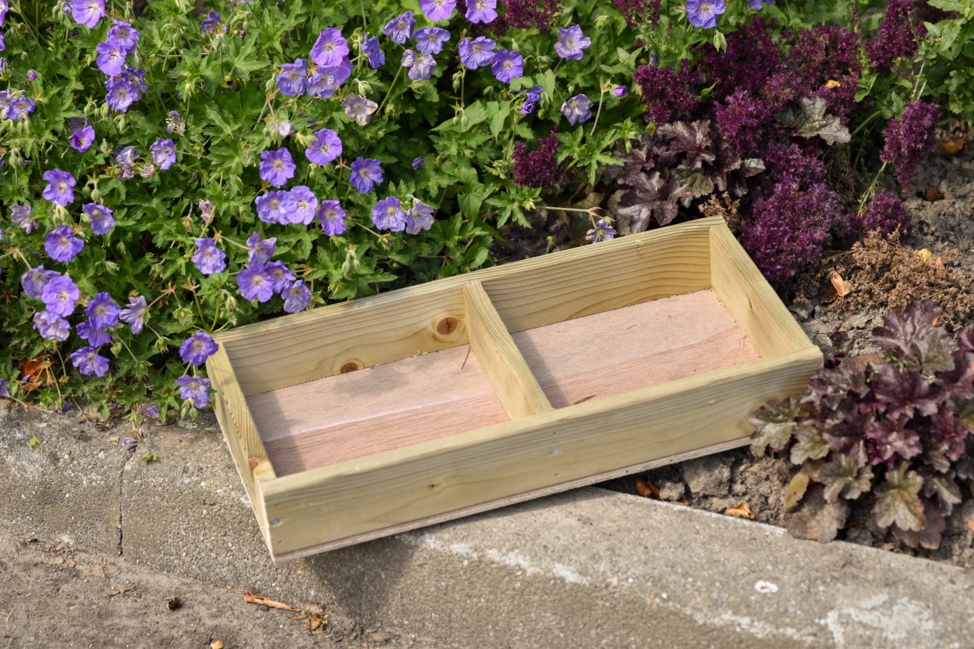 - Metalen schuiflade (zink) om het hok handig schoon te maken