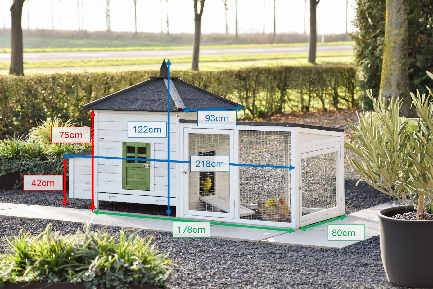 | Buitenwerkse afmetingen incl. dak en nestkast (BxDxH) | 218x93x122cm |