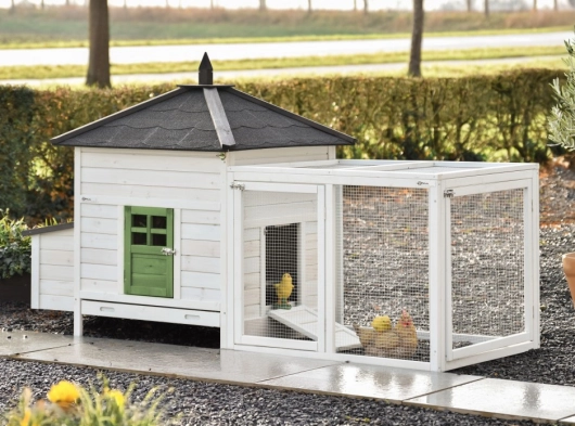 Dit prachtige kippenhok Ambiance Large is tot in de puntjes afgewerkt! Het heeft een handige, uitschuifbare mestlade en een verwijderbaar dak. Het kippenhok Ambiance Large heeft mooie en praktische details, evenals een handige uitloopren die eindeloos kan worden uitgebreid. Deze module past in de meeste tuinen en het nachthok is geschikt voor 4-6 kippen, afhankelijk van de grootte van het ras.