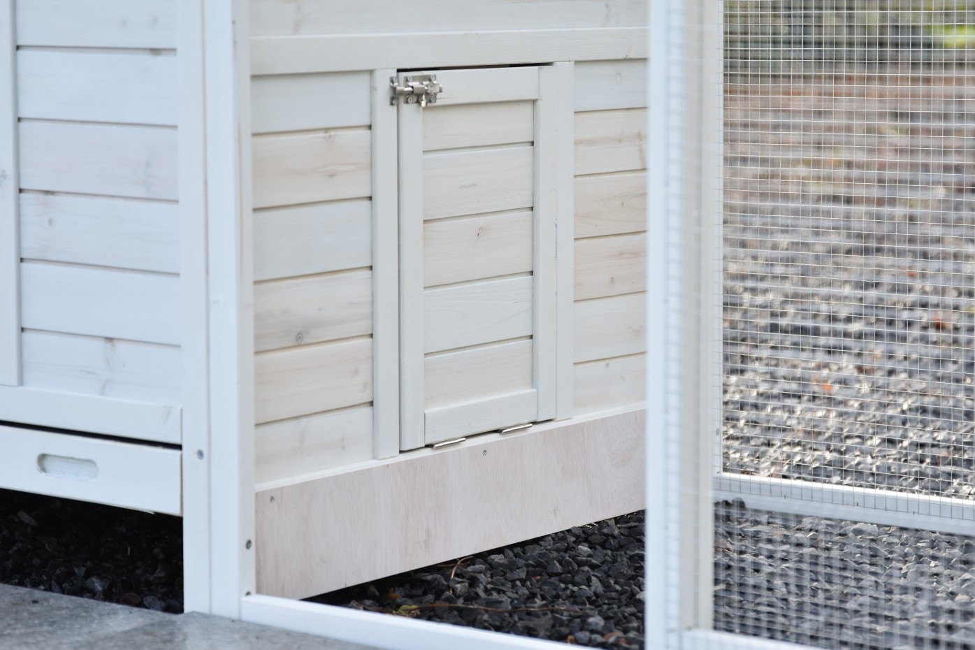 - Wanneer het hok niet op een beschutte plaats staat, dan adviseren wij om het te verankeren