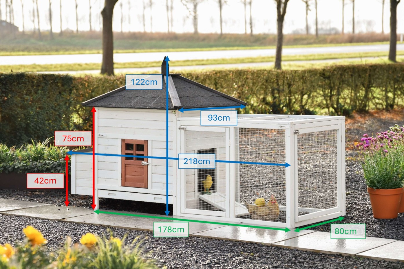 | Buitenwerkse afmetingen incl. dak en nestkast (BxDxH) | 218x93x122cm |