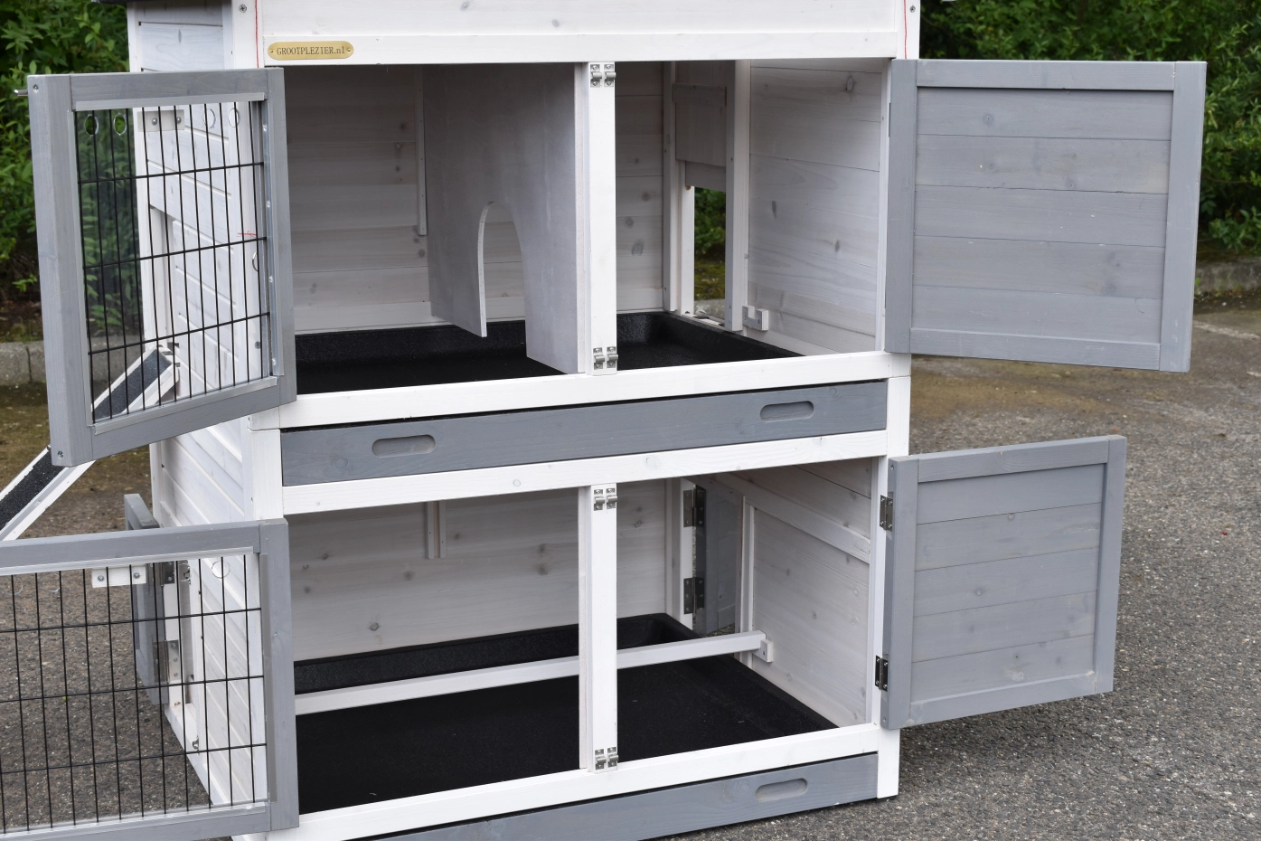- De deuren van dit dierenhok zijn voorzien van dubbele sloten