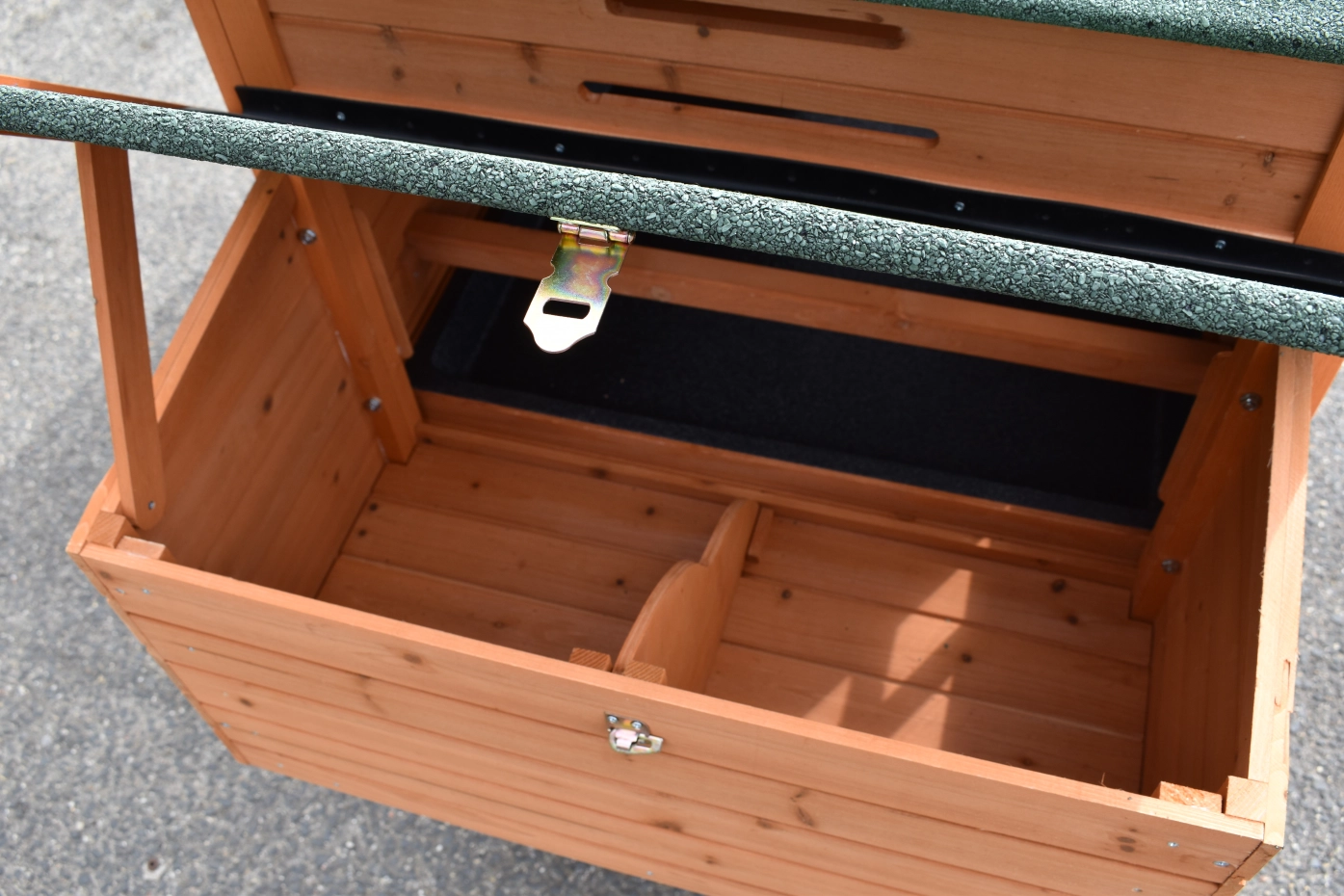 - Het hok heeft een dak met dakleer