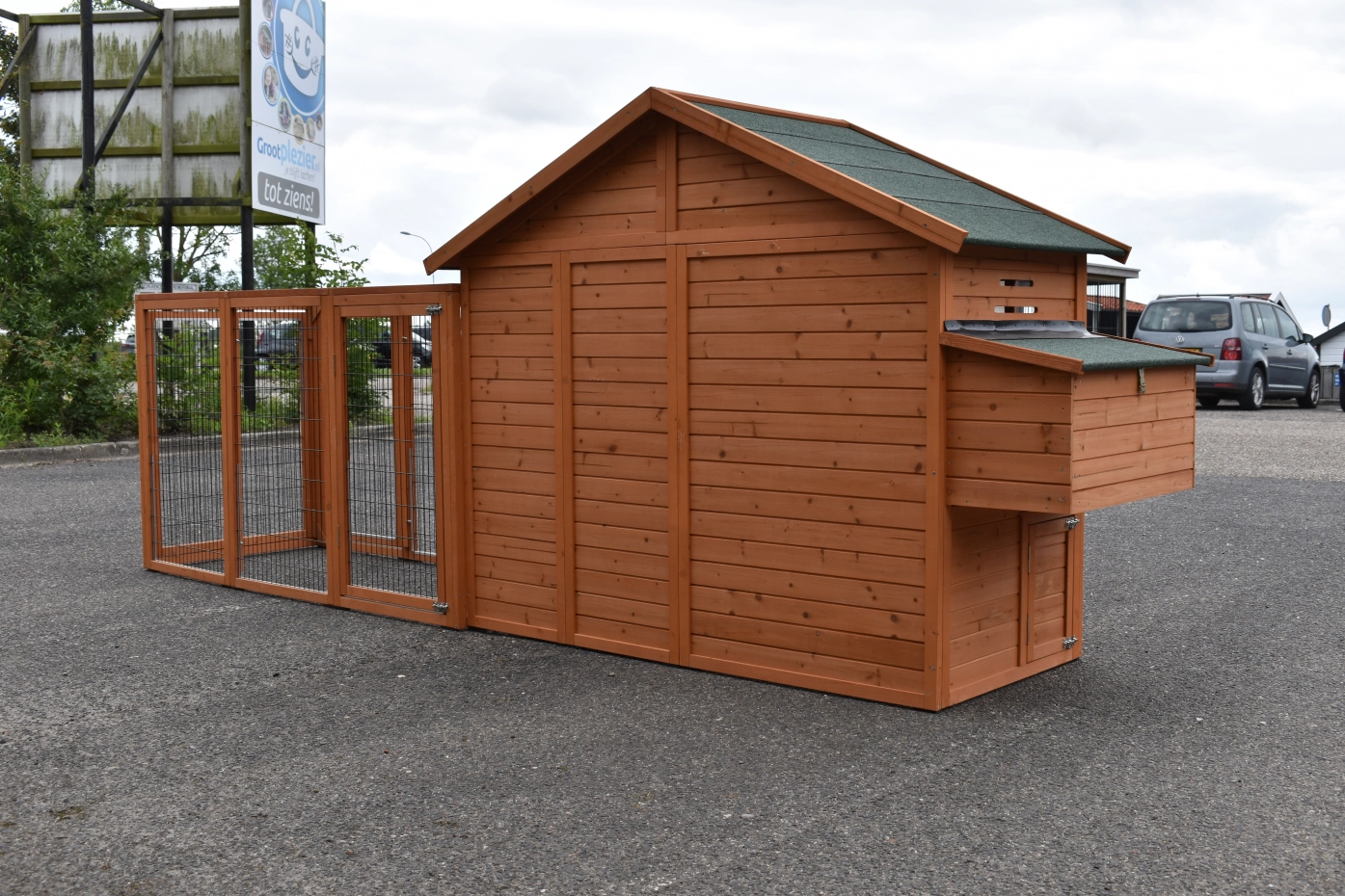 - Dit dierenhok is gemaakt van mooi dennenhout
