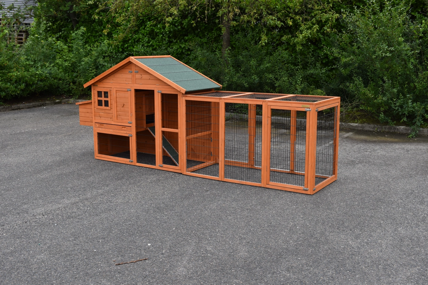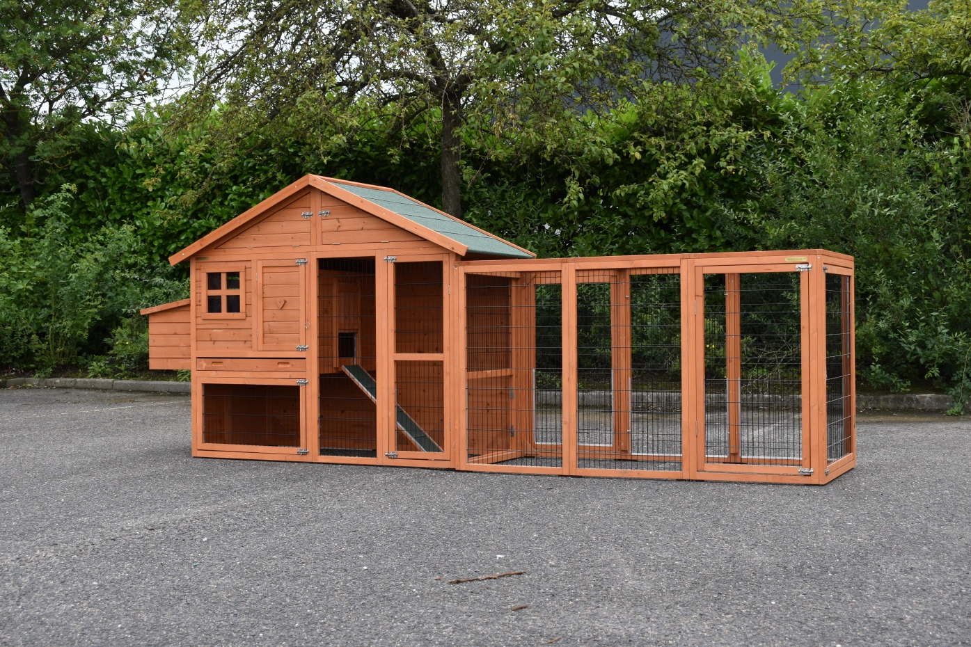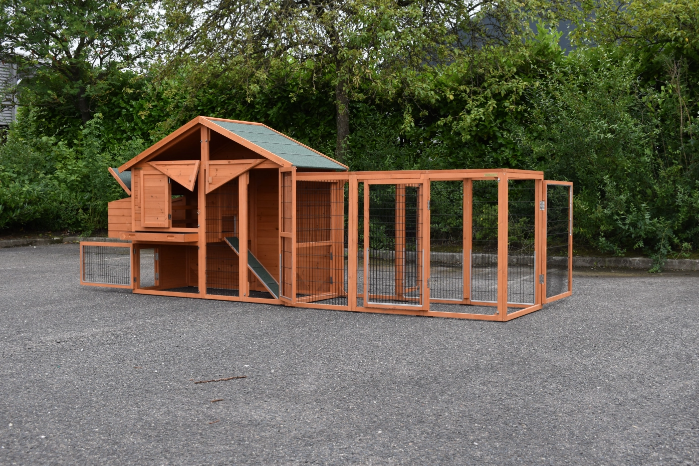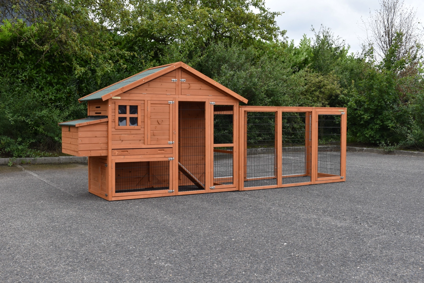 Kippenhok Holiday Medium met extra uitloopren is een zeer praktisch en mooi kippenhok met nachthok en ruime ren. Dit schitterende kippenhok is tevens voorzien van een legnest aan de linkerzijde. Kippenhok Holiday Medium met extra uitloopren is geschikt voor het huisvesten van ongeveer 4 - 8 kippen.