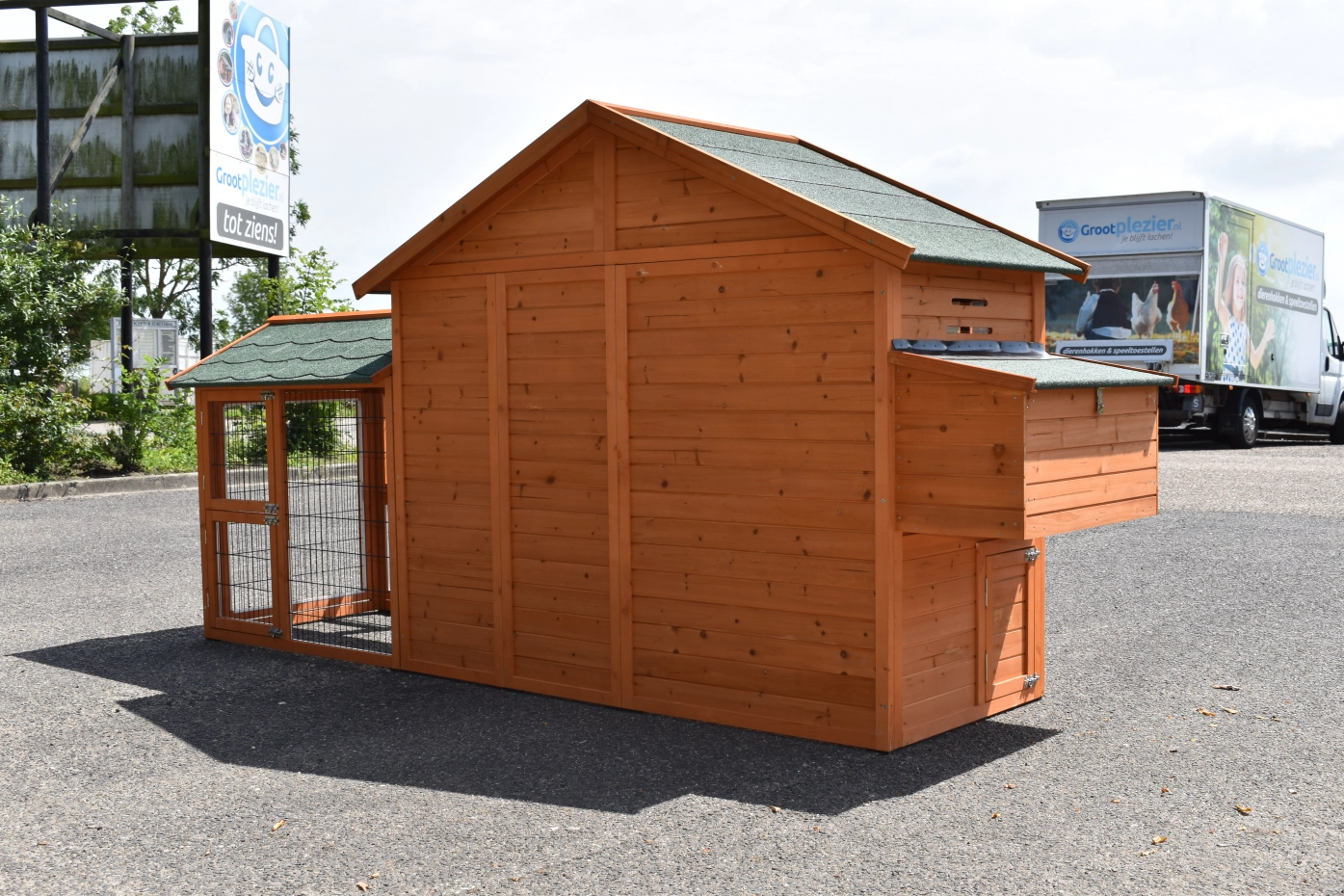 - Dit dierenhok is gemaakt van mooi dennenhout