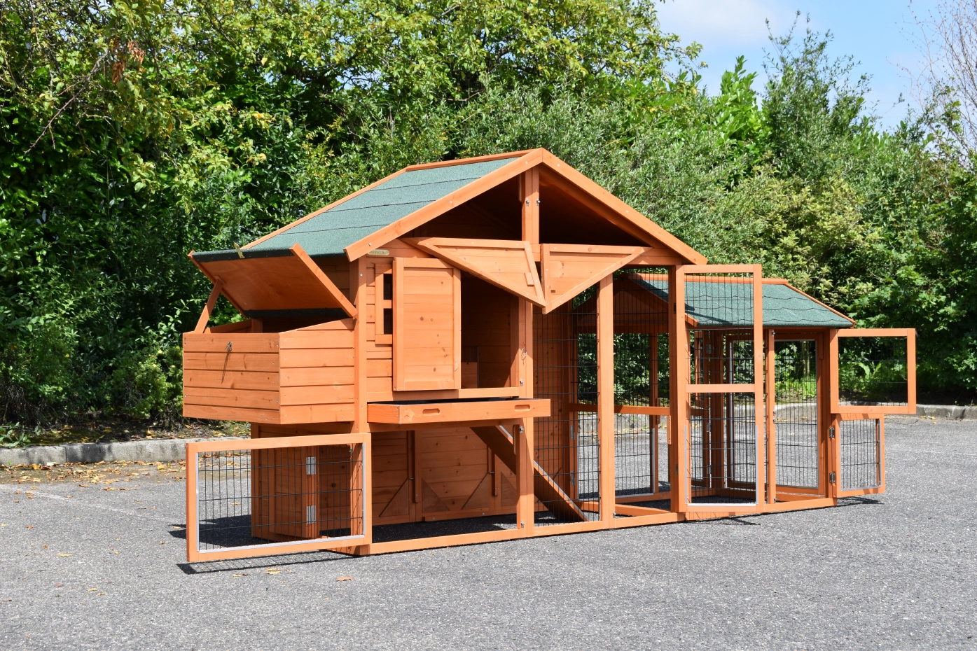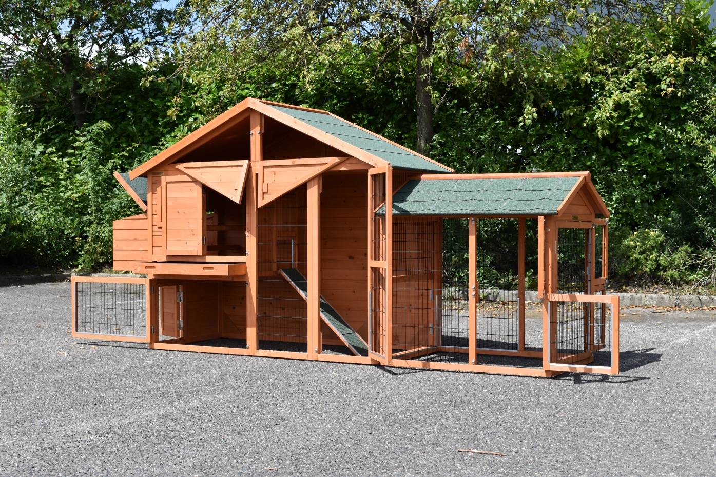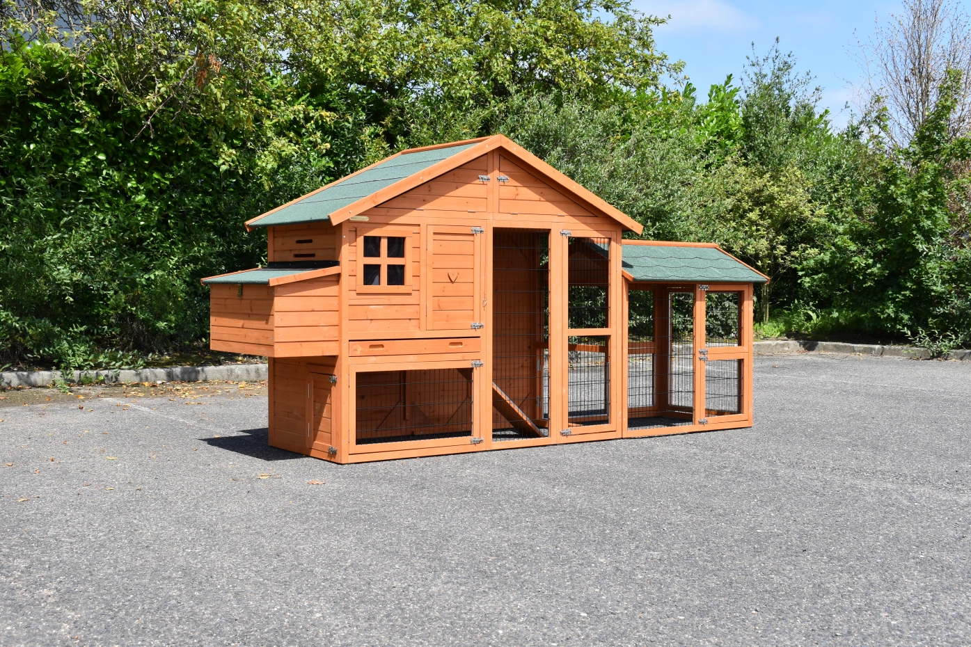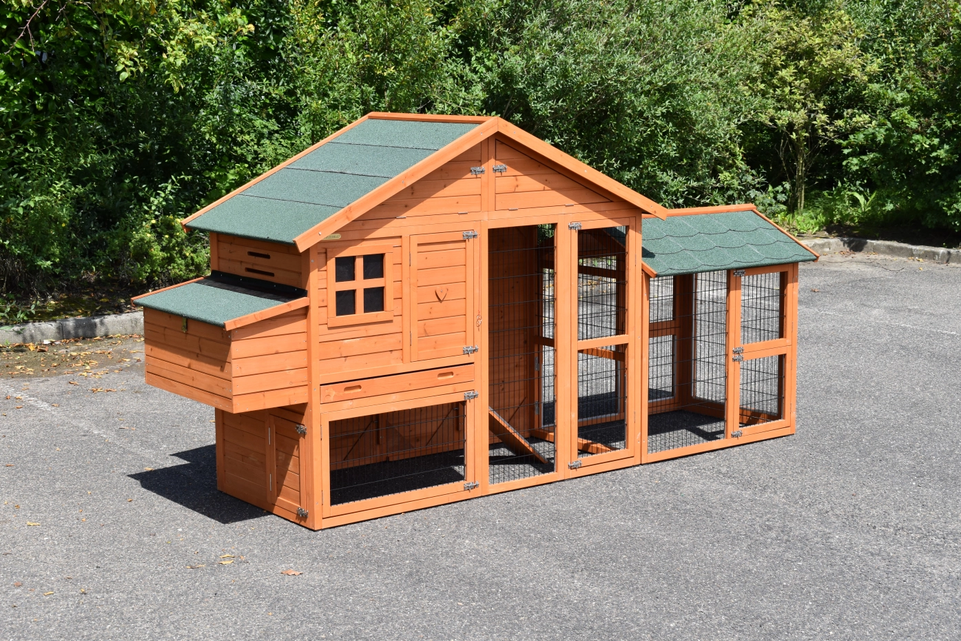 Kippenhok Holiday Medium met extra uitloopren is een zeer praktisch en mooi kippenhok met nachthok en ruime ren. Dit schitterende kippenhok is tevens voorzien van een legnest aan de linkerzijde. Kippenhok Holiday Medium met extra uitloopren is geschikt voor het huisvesten van ongeveer 4 - 8 kippen.