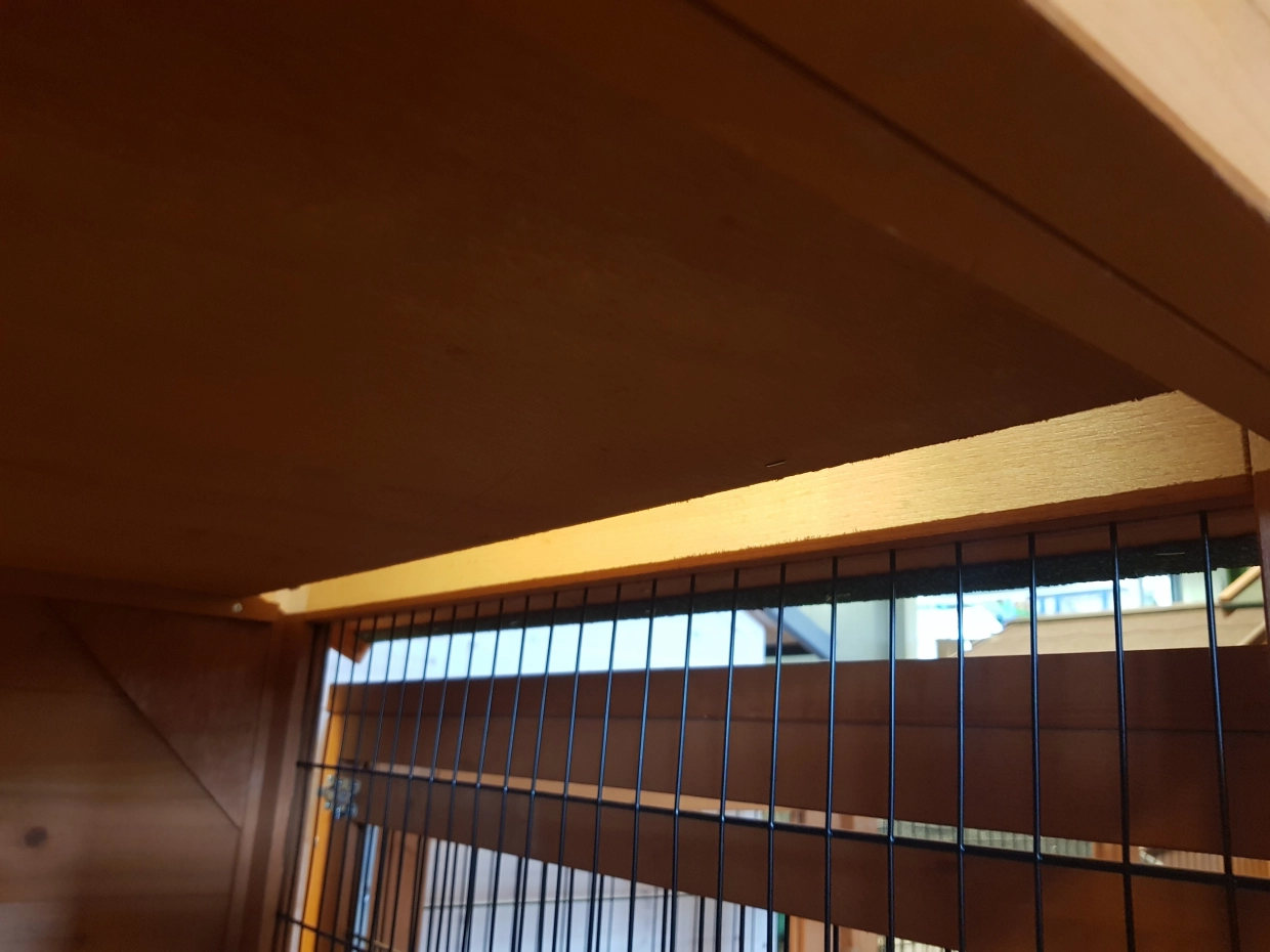 - Het hok heeft een dak met dakleer
