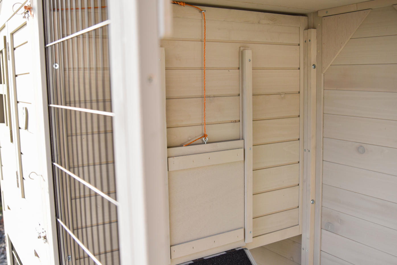 • De deuren van dit dierenhok zijn voorzien van dubbele sloten