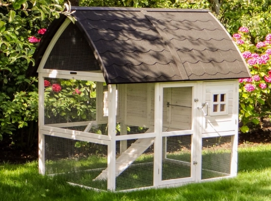 Kippenhok Kathedraal is een mooi hok voor 3 grote of 5 kleine kippen. Ze gebruiken de ruimte optimaal omdat de schuilplaats zich boven de ren bevindt. Ook in de ren zijn de dieren beschermd tegen regen, omdat het dak over de hele ren is aangebracht. Dit hok kan later ook gemakkelijk worden uitgebreid met een ren van Kathedraal. Vaak wordt kippenhok Kathedraal op het gazon gebouwd. Wij raden u aan om eerst een fundering van geïmpregneerd hout op het gazon te leggen, waarop u de stal bouwt. Op die manier staat het kippenhok wat hoger en is het beschermd tegen vocht.