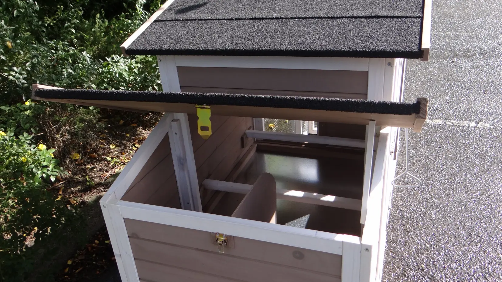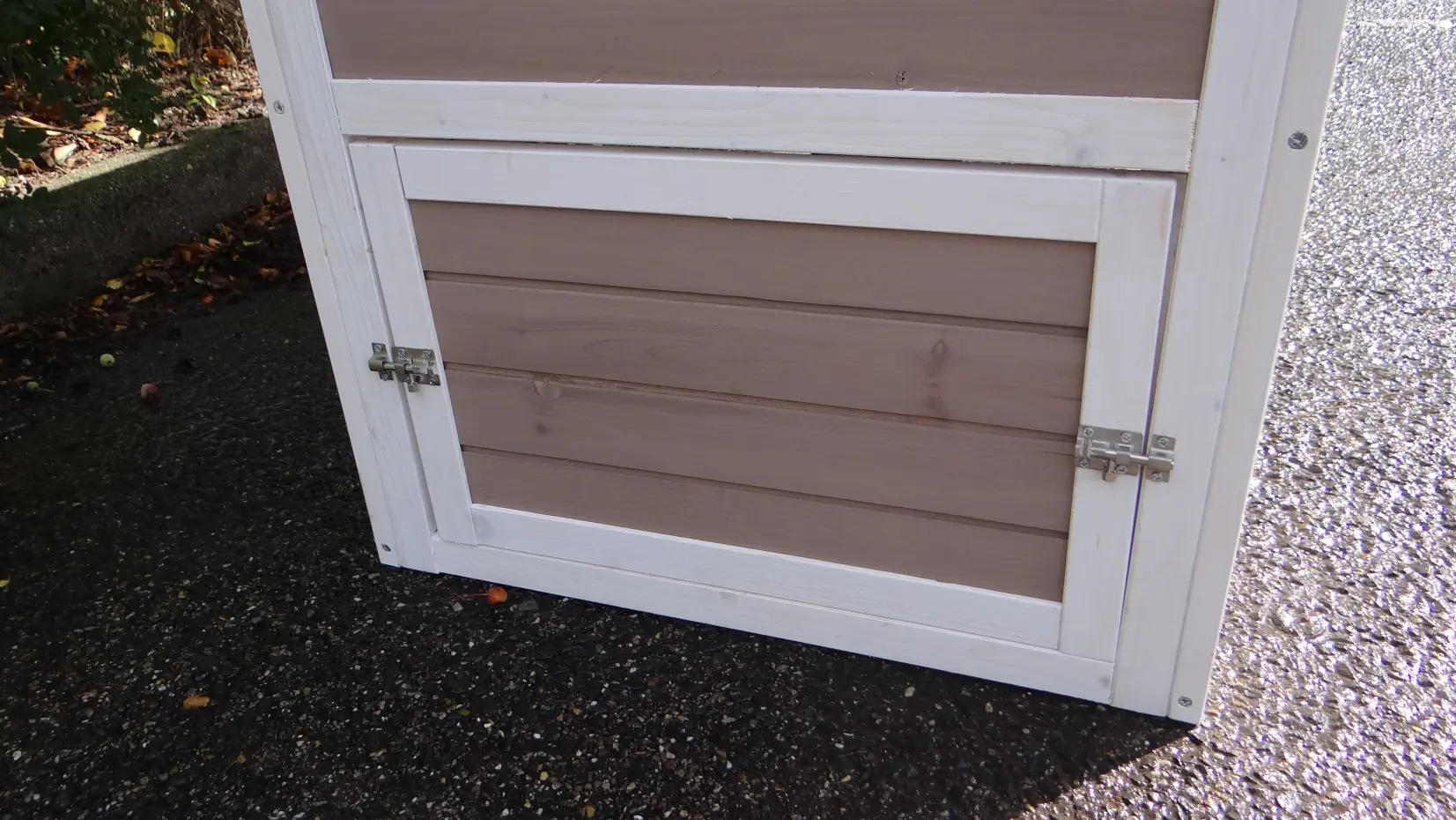 - Wanneer het hok niet op een beschutte plaats staat, dan adviseren wij om het te verankeren
