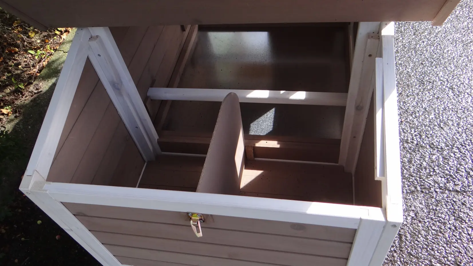 - Metalen schuiflade (zink) om het hok handig schoon te maken